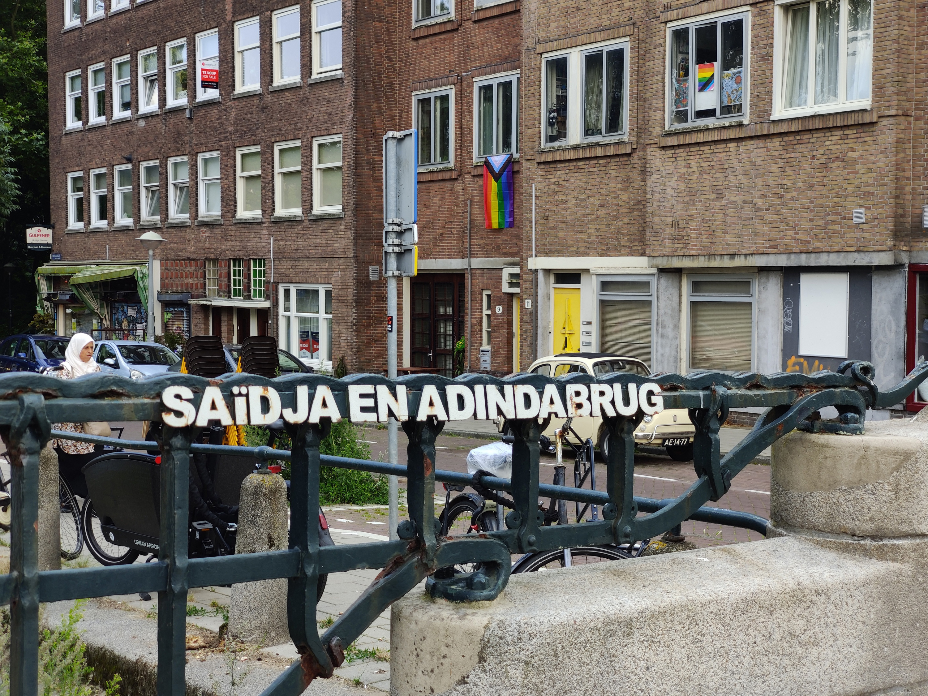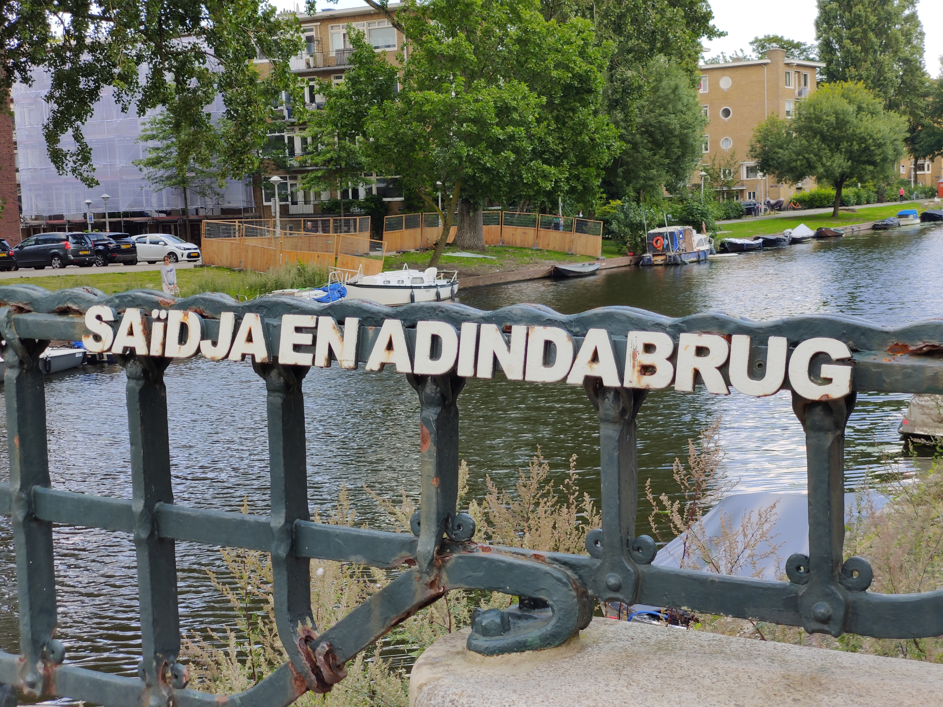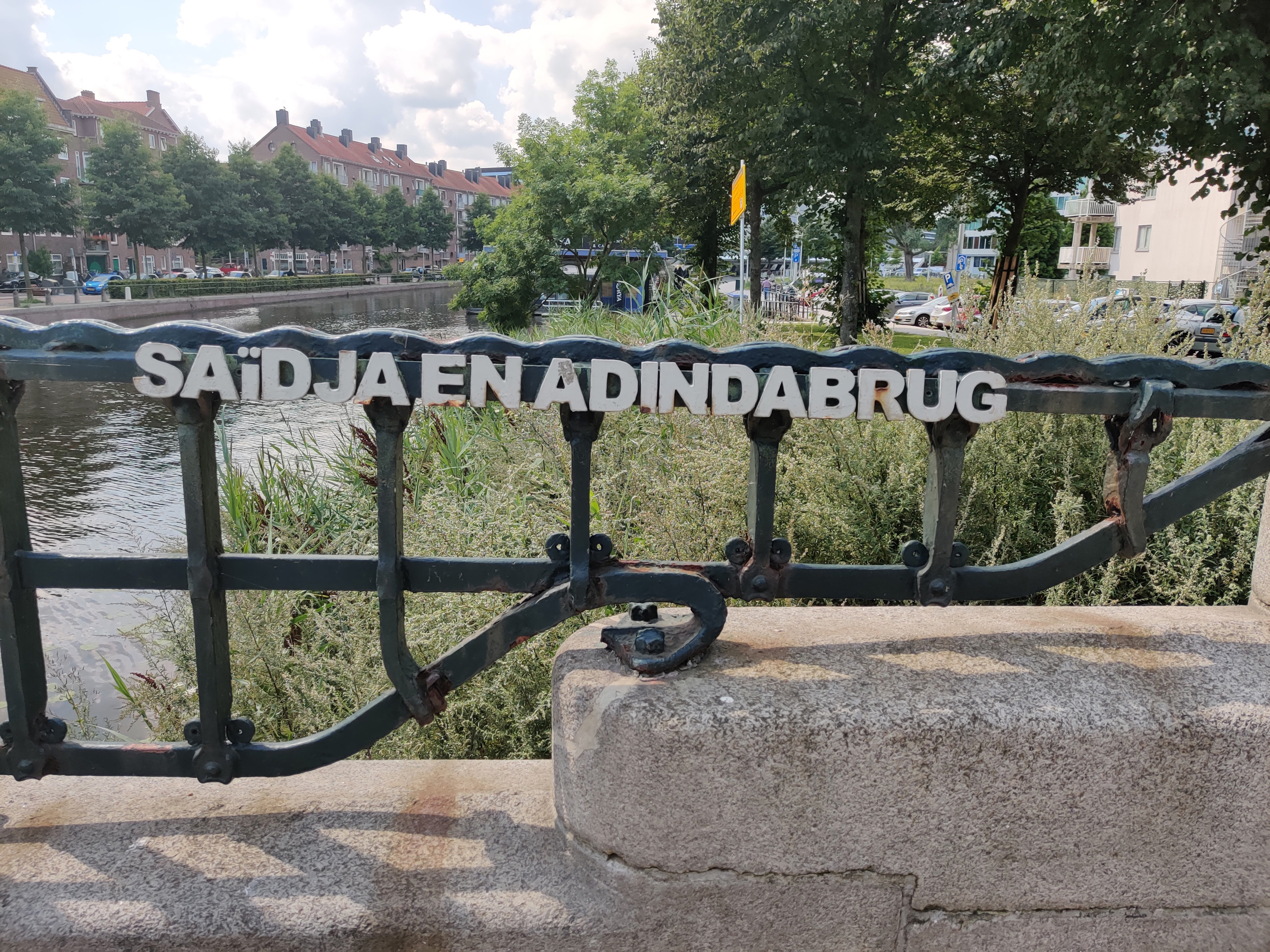 Lettering for Amsterdam “Bridge 162” which was renamed Saïdja en Adindabrug (“Saïdja and Adinda Bridge”) in 2006. Saïdja and Adinda are two characters from the novel Max Havelaar (1860) by Multatuli, a story about a story about corruption in the Dutch colonial rule of Java, the main island of what was to become the republic of Indonesia in later years.