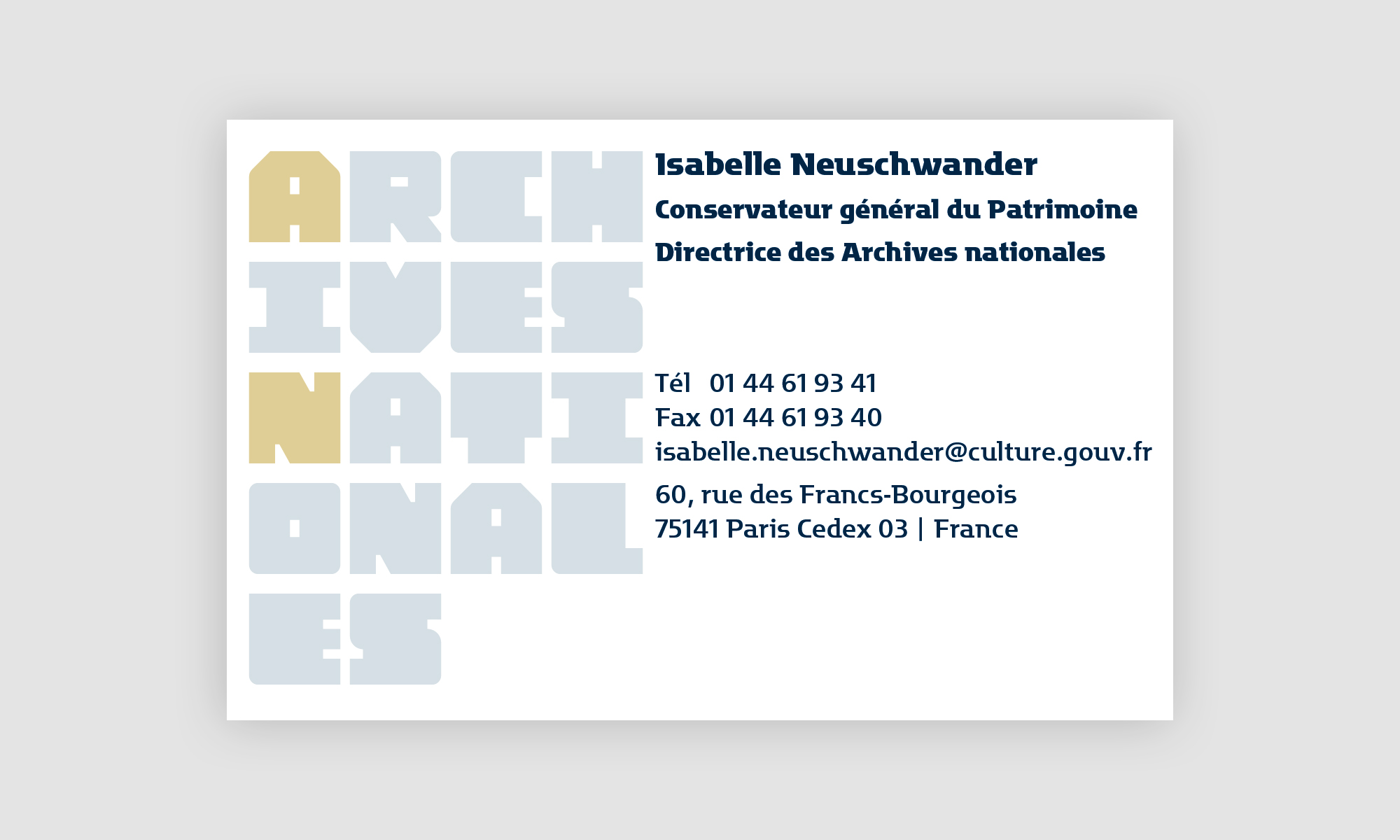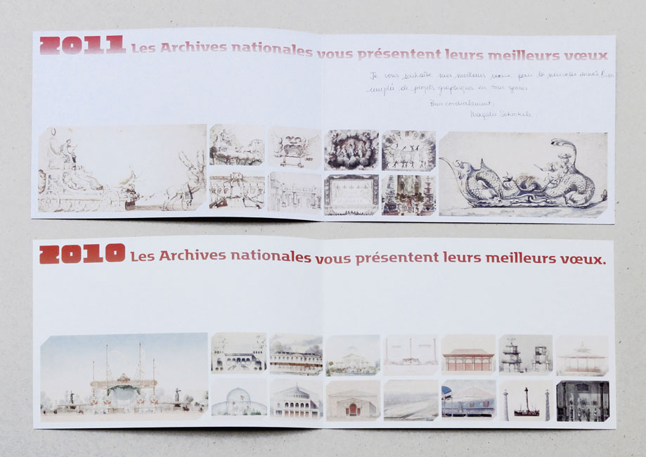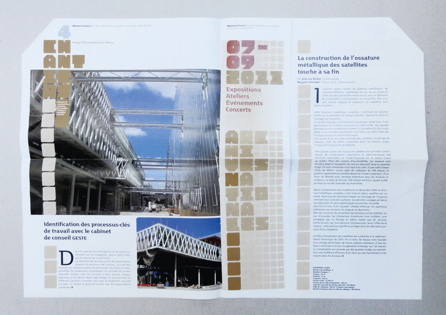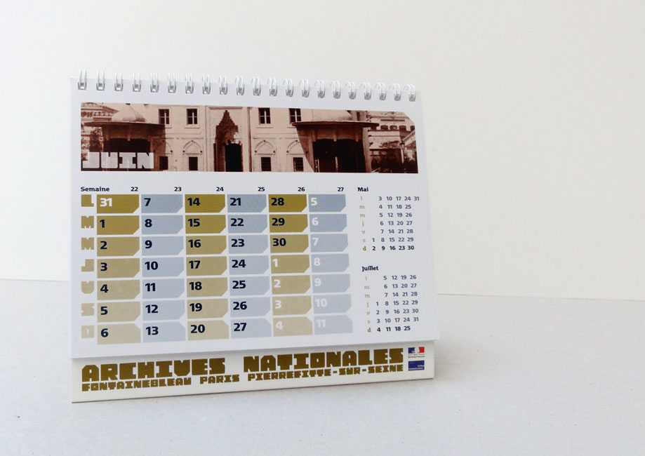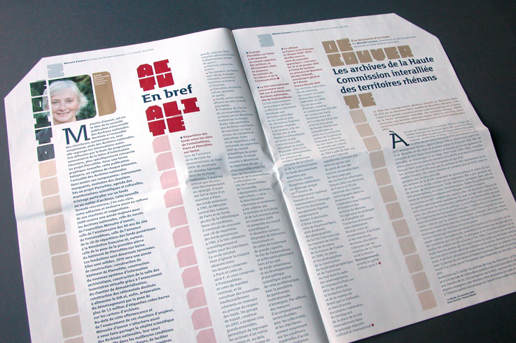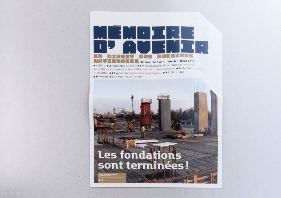 Motter Factum serves as the complementary text face. It’s used in several of its ten styles (five weights plus italics), for stationery, calendars, and other printed matter. It’s also prominently used in Mémoire d’avenir, the quarterly journal of the Archives Nationales.