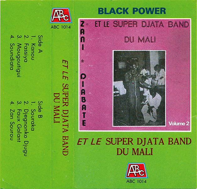 J-card for the cassette version (almost certainly a bootleg) of a rare release by the fantastic, variously named Super Djata Band, led here by guitarist and founder Zani Diabaté, originally released with Éditions Omogidi Music, Ivory Coast, in the 1980s.