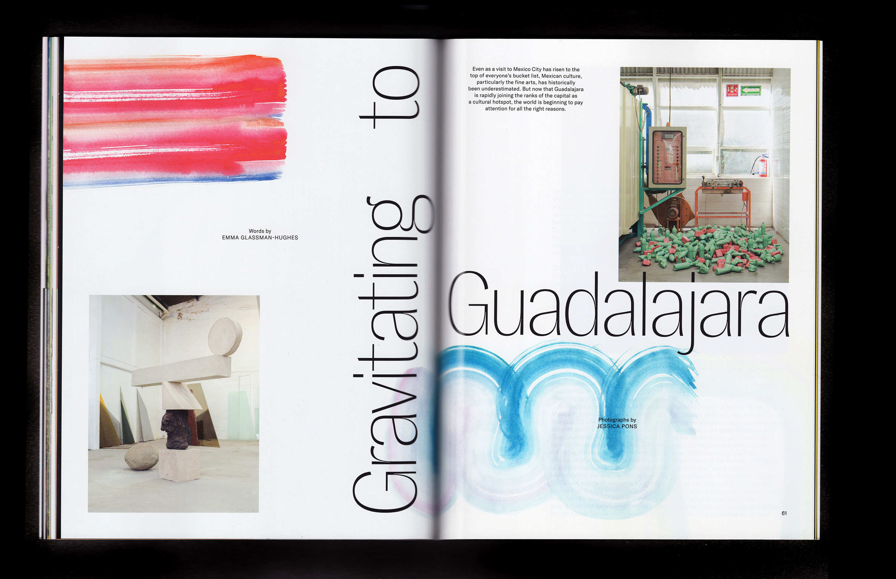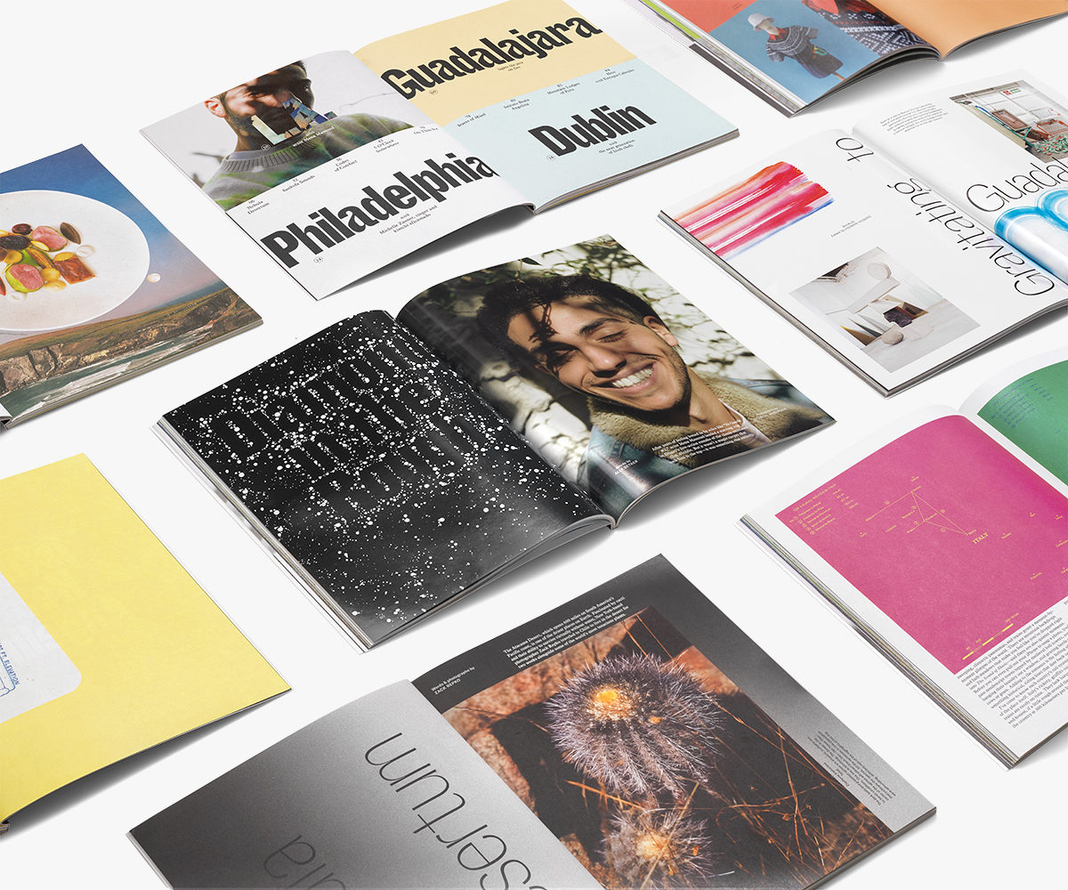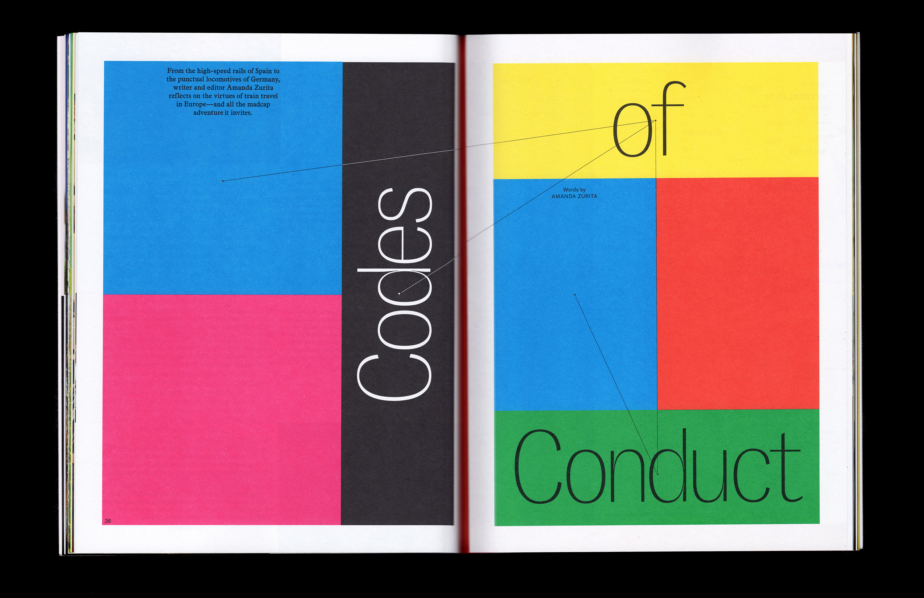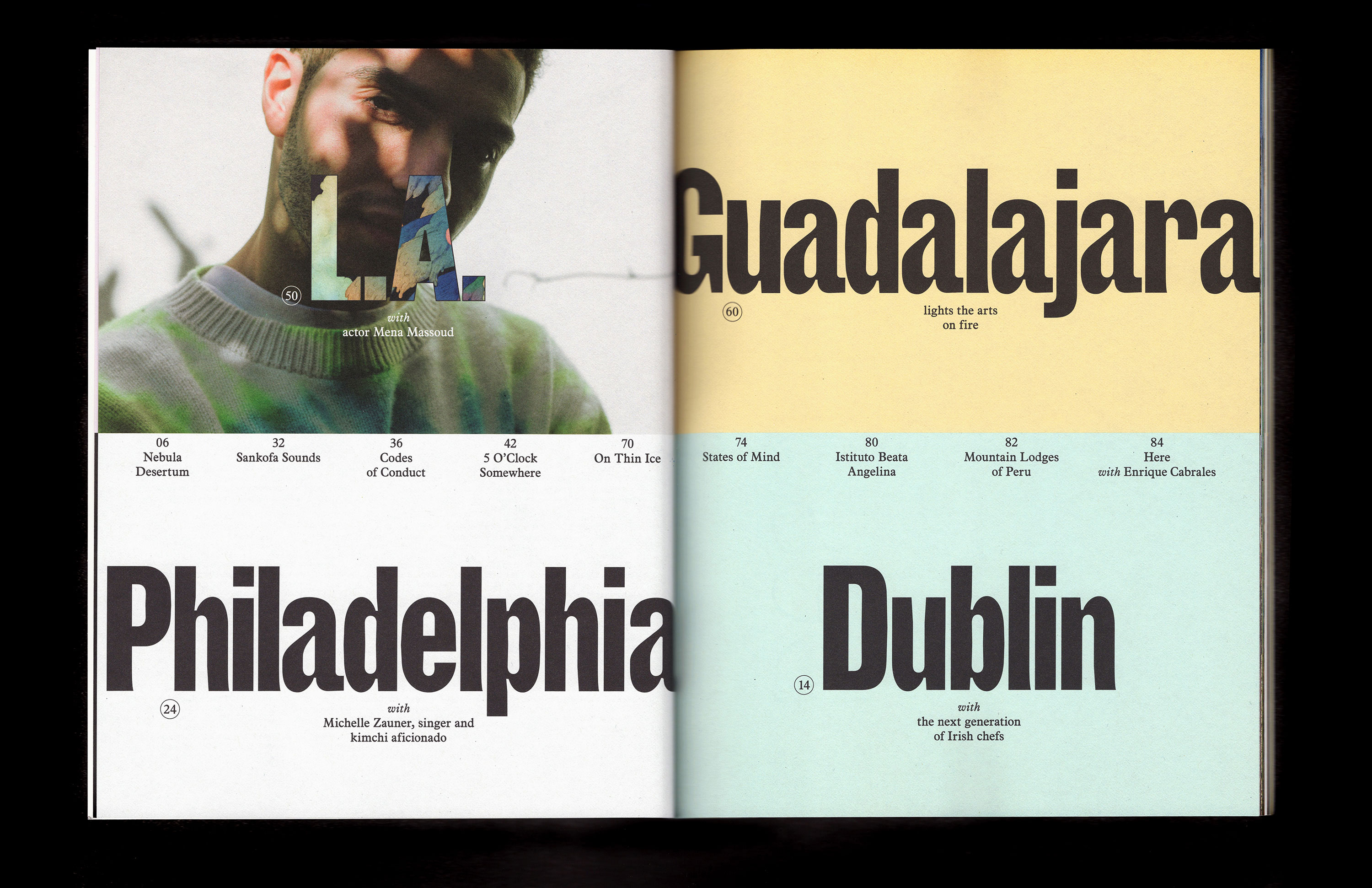 Here Magazine is the travel magazine by Away Travel Luggage that tells compelling, thoughtful and unique travel stories through the lens of local, creative, and influential people. The magazine is designed by Chloe Scheffe and uses a wide array of typefaces like Girott Bold by Radim Pesko, News Plantin, GT America and GT Zirkon. Find more images and all articles via the Here Magazine Issue 8 web page.