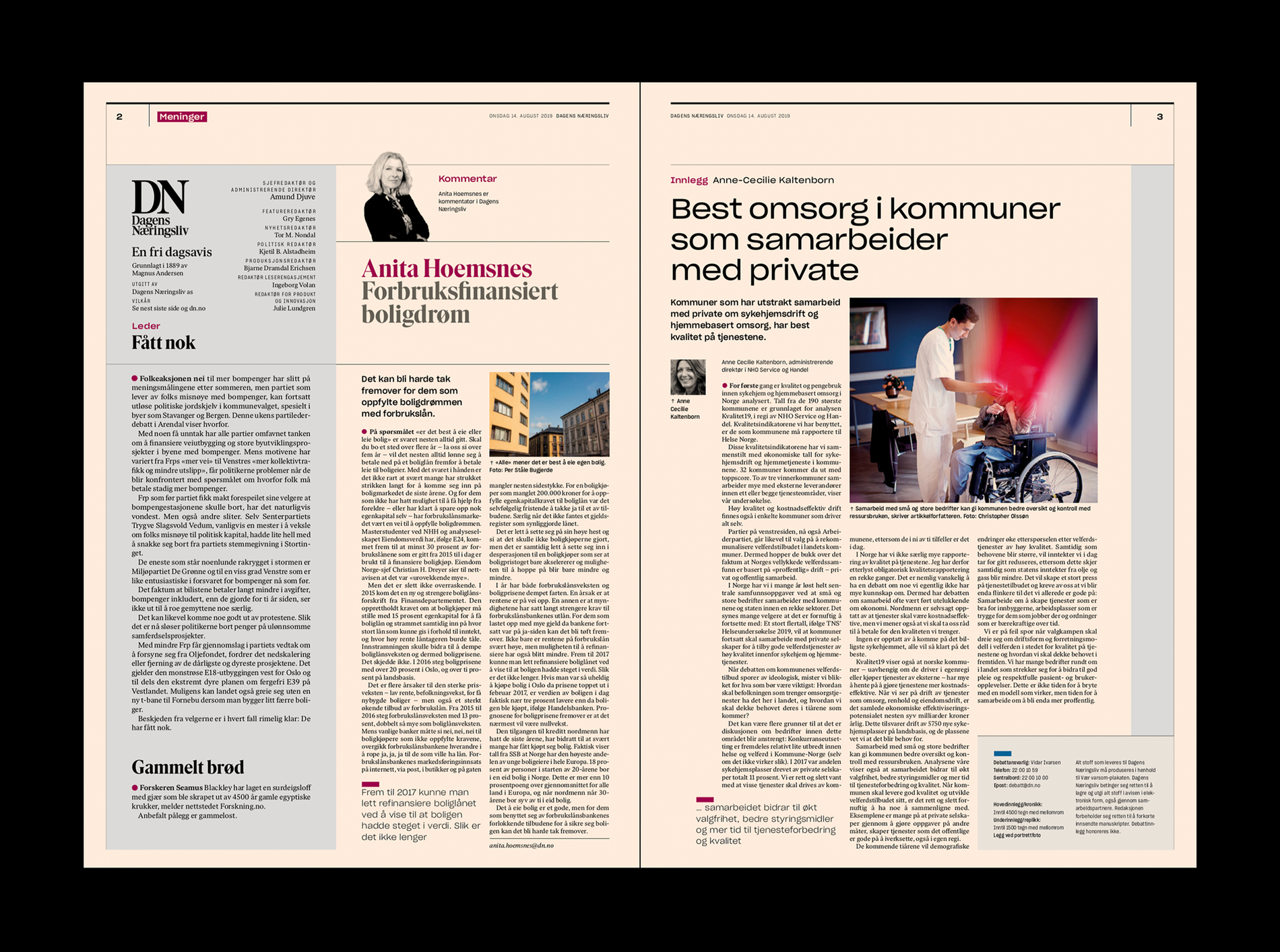 Dagens Næringsliv newspaper Contributed by Sharp Type on Dec 2nd, 2019. Artwork published in 2019. License: All Rights Reserved. Dagens Næringsliv, commonly called DN, is Norway’s largest financial newspaper and uses Sharp Grotesk as their primary typeface in print, complemented with styles of Ivar. Read and see more images on Sharp Type News. License: All Rights Reserved. License: All Rights Reserved. License: All Rights Reserved. Typefaces More about Sharp GroteskGet Sharp GroteskMore about Ivar NostalgiGet Ivar NostalgiMore about Ivar DisplayGet Ivar DisplayMore about Ivar HeadlineGet Ivar HeadlineMore about Ivar TextGet Ivar Text Formats Newspapers (264) Topics News (556) Business/Finance (776) Designers/Agencies Anne Brun (1) Jørgen Brynhildsvoll (1) Tagged withnewspapers (144)newspaper interiors (55)headlines (207)multiple widths (571)multiple weights (422)pull quotes (165)Norwegian (language) (157)journalism (69)finance (122)optical sizes (386)infographics (293)typeface combinations (3989)type series (630)outlined type (1269) Artwork location Norway (305) In SetsSharp Type (Sharp Type) (90) 1 Comment on “Dagens Næringsliv newspaper” Jay Mellor says: Dec 3rd, 2019 1:52 pm Marvelous! I like the interior pages in the newspaper. Post a comment Name Email – will not be published Website Your response Submit Comment More Sharp Grotesk in use American Documentary2019Type/CodeContributed by Ian Lord Creative Industries Festival 2023, “HumAIn Language”2023ArtcorVeronica BelousContributed by Victor Bartis TED Countdown2019Contributed by Sharp Type Sponsor More in News Fact magazine coversc. 1964Herb LubalinTom CarnaseContributed by Nick Sherman Blog Denise Jacobsc. 2018Nils PoppeContributed by nils poppe The Verge Fifty (2014)2014Dylan LathropUy TieuJeremy SenglyContributed by Florian Hardwig Staff Pick No-Ficción website2023No-FicciónContributed by Production Type More in Newspapers Kant-On newspaper2021Johann JacobyLea FlemmingContributed by Johann Jacoby 100 Percent2010Ian Walsh DesignContributed by IanwalshDesign Philippine Daily Inquirer2016García MediaMario GarcíaAdonis DuradoContributed by Willerstorfer Font Foundry Financial Express, Indiac. 2017unknownContributed by TypeMates More Fonts In Use Maison de la Culture d’Amiens, 2022/23 season2022Julien LelièvreContributed by Production Type Staff Pick New Space Moscow2016Anna KulachekContributed by Gayaneh Bagdasaryan Staff Pick Les Misérables (Musical and Film) Logo1985IgnitionRuss EglinContributed by Stephen Coles Staff Pick Valentina: Soul in Sapphire by Joseph H. Delaney and Marc Stiegler1984Bryn BarnardContributed by Florian Hardwig Staff Pick
