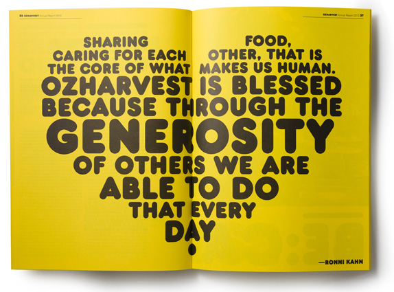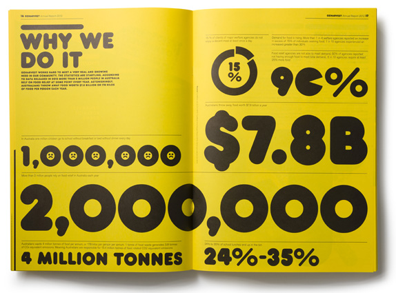 Established in 2004, OzHarvest is an Australian nonprofit organization that rescues food mainly from restaurants, food wholesalers, and retailers to distribute to charities supporting the vulnerable in Sydney, Newcastle, Adelaide, and Brisbane delivering 441,500 meals per month across the country with a fleet of 15 vans. In December OzHarvest introduced a new identity created in a pro-bono collaboration between Frost* and Droga5.