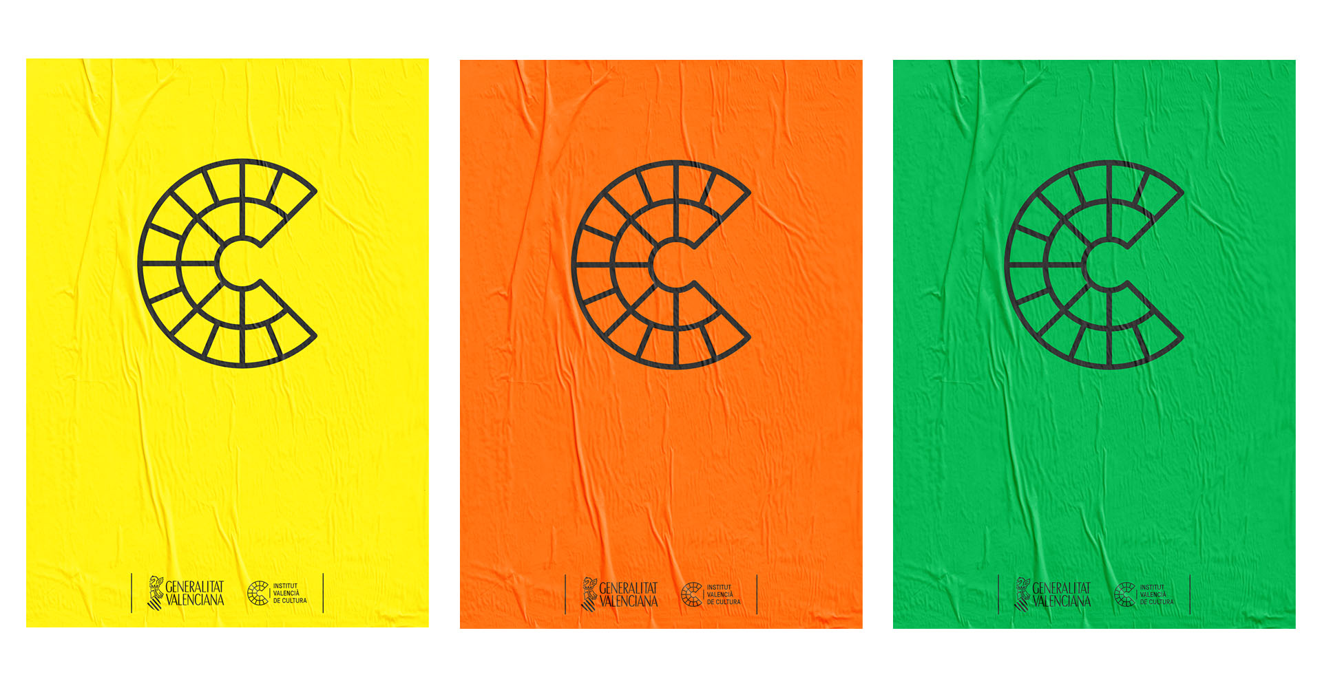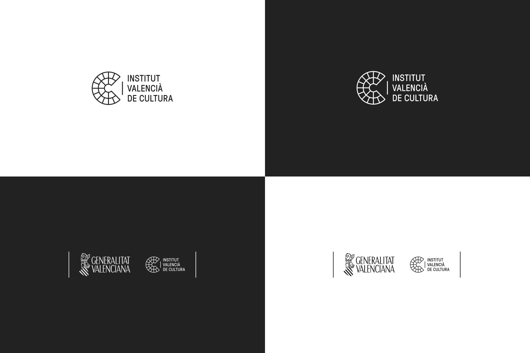 The brand for the Valencian Institute of Culture comprises a symbol, the letter C for culture, and a wordmark with the Institute’s name. C represents the culture, the Institute’s central activity, taking its morphology from the space where it took place.
