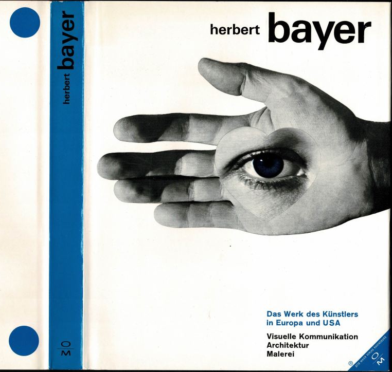 Herbert Bayer. Painter, Designer, Architect is the first monograph of Herbert Bayer. His body of work as artist, architect, exhibition and industrial designer is presented on 212 pages, featuring more than 200 color and black-and-white reproductions. The book was designed by Bayer himself and typeset by Graphic Arts Typographers, Inc. On the jacket and the cover, Bayer’s name is set in all-lowercase Univers. The secondary title “Visual Communication, Architecture, Painting” is in Akzidenz-Grotesk.