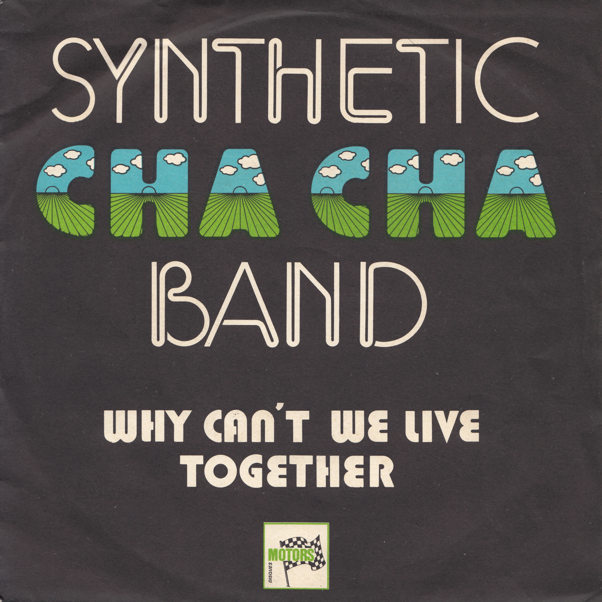Neo Script, Astral, and Blippo Black in all caps on the sleeve of a French 7″ single. “Why Can’t We Live Together” appears to be the only release by the Synthetic Cha Cha Band.