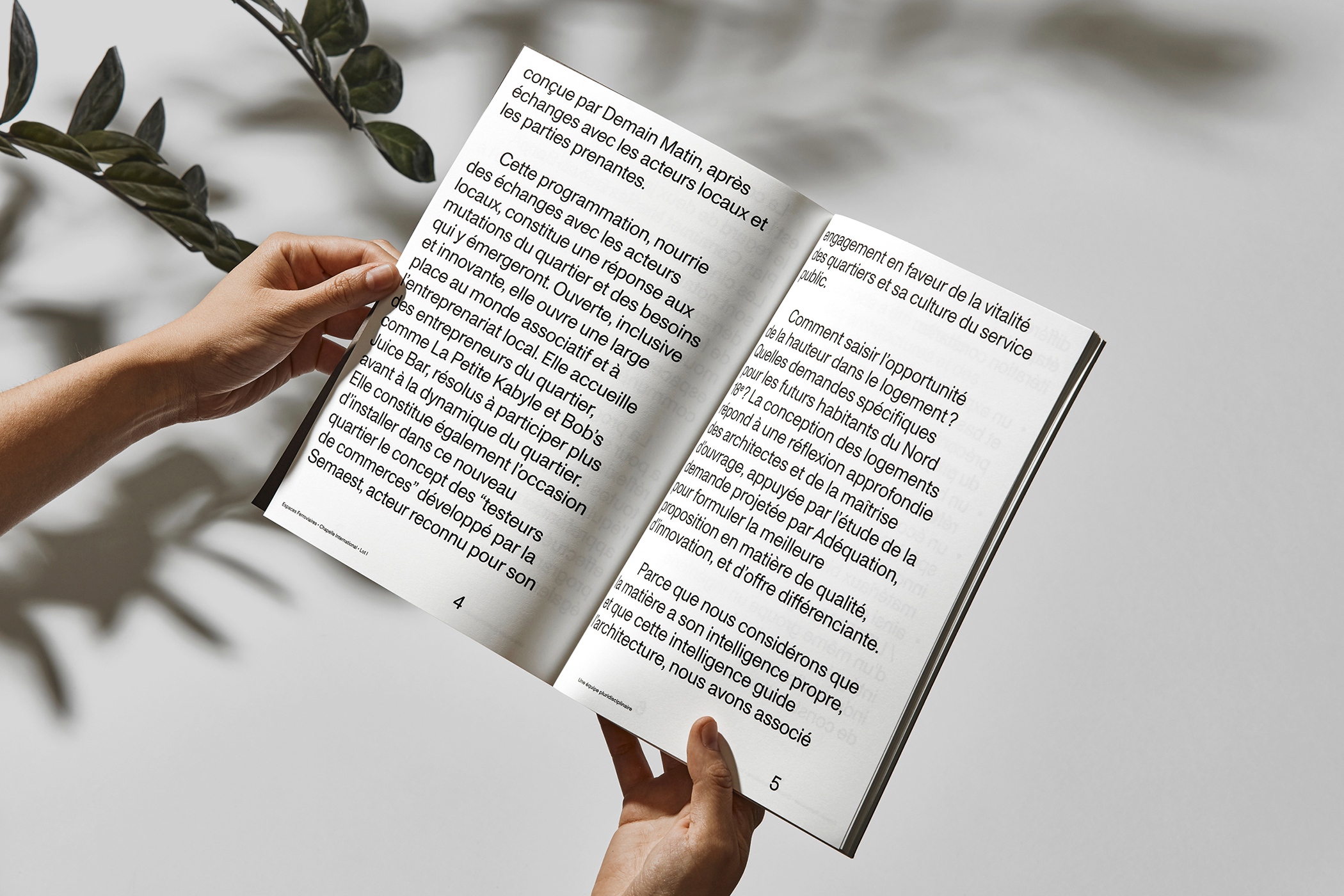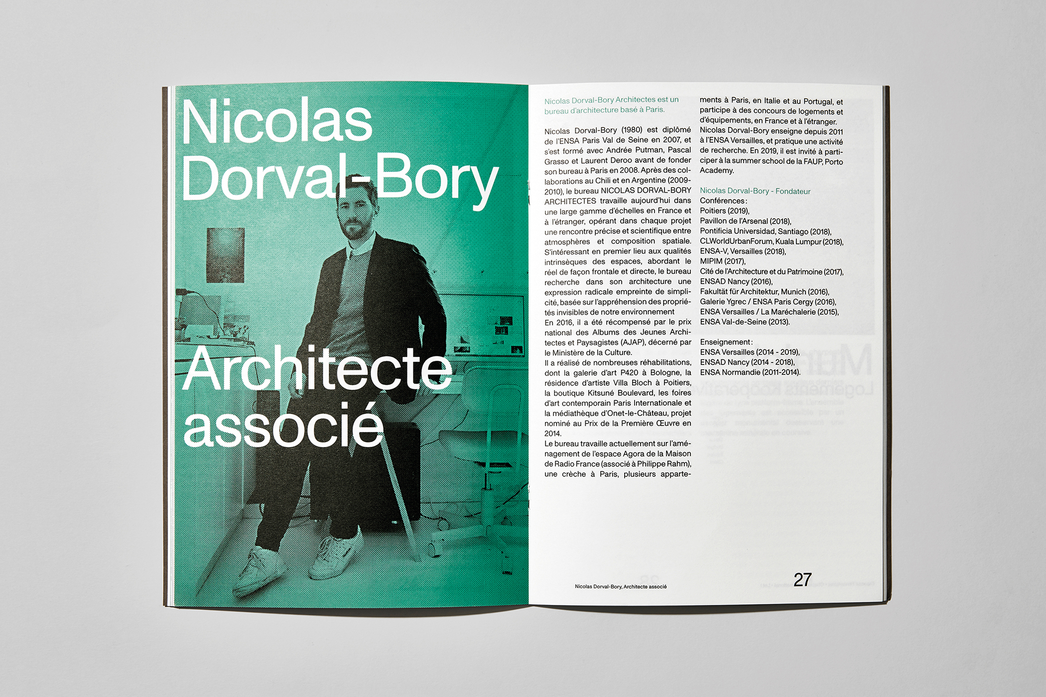Here is the project designed by Plan Comun and Nicolas Dorval-Bory, commissioned by Nacarat. The submission is divided in three parts: concept, project, and team. République Studio arranged them into three separate booklets. When placed on top of each other, the booklets become one.
