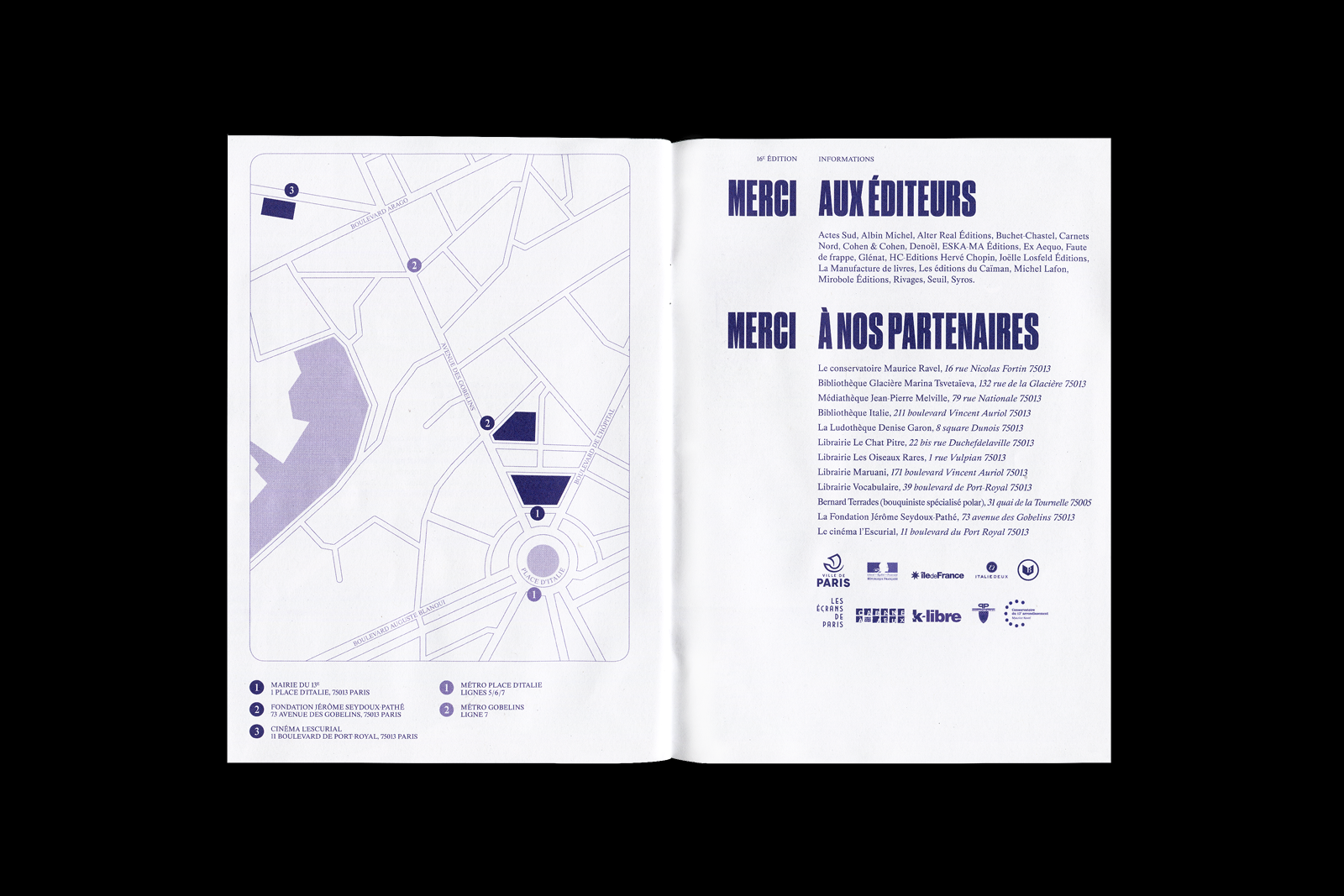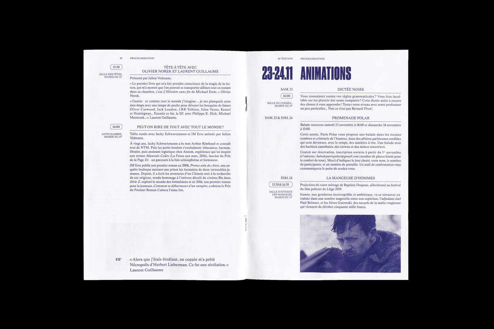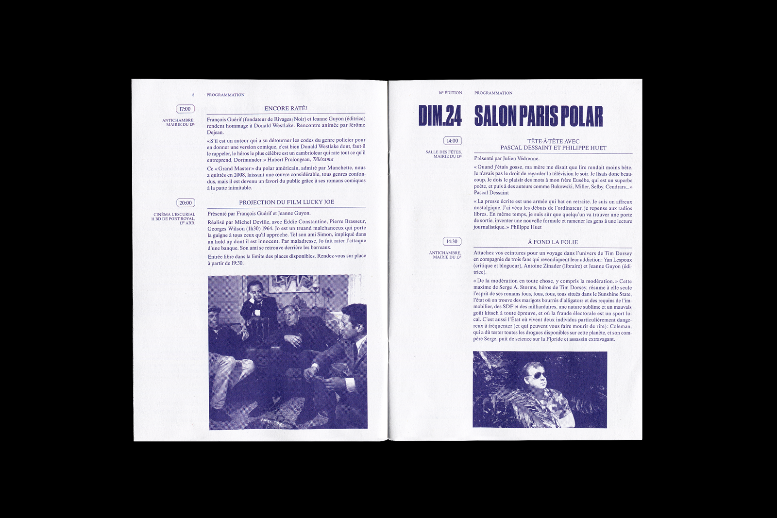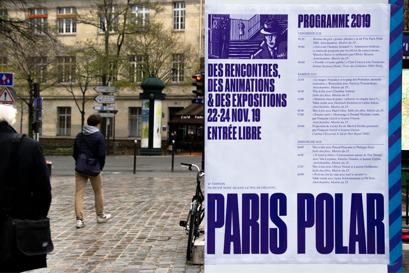 Studio Fire Work’s new identity for Paris Polar 2019, a festival focusing on crime and mystery novels, use the bold Druk Condensed as a reference to the headlines of a newspaper’s crime section. It also features the “New game plus edition” of Happy Times at the IKOB as the text typeface.