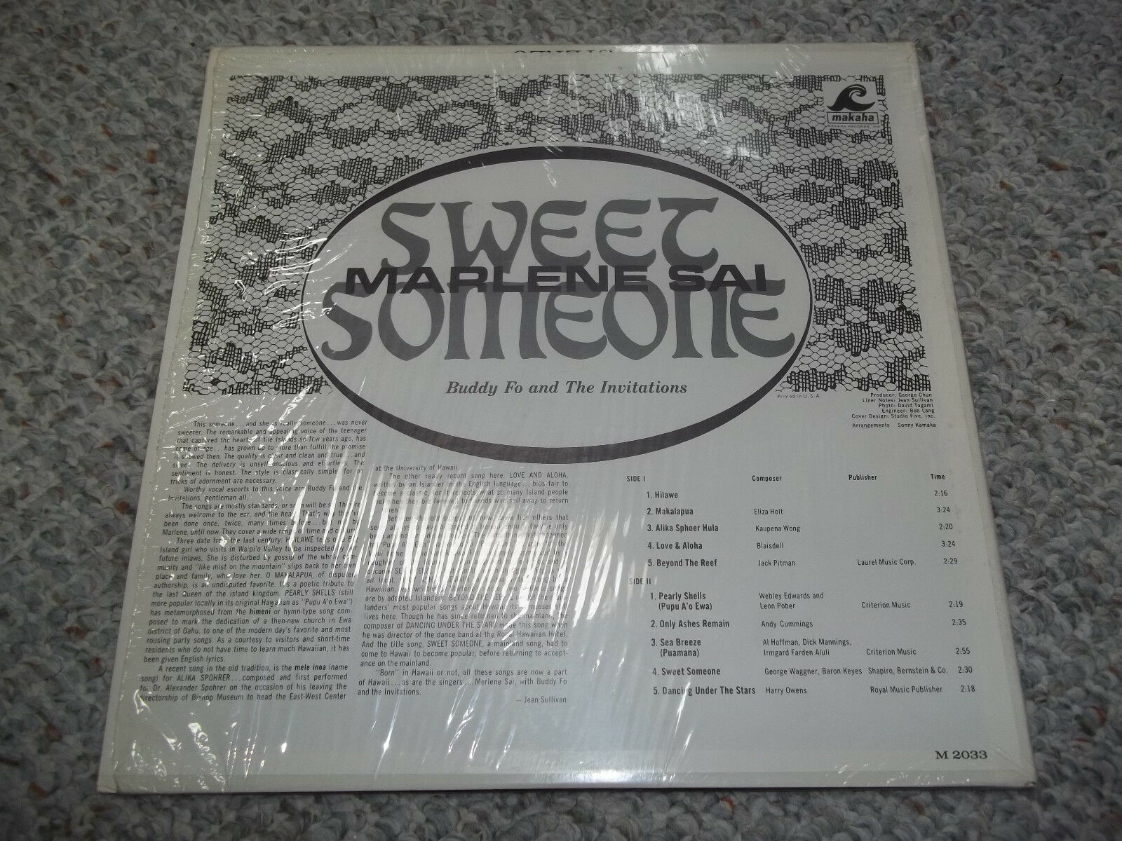 Marlene Sai – just a few years earlier, as a teenage sensation with the remarkable voice, she had captured the collective hearts of the [Hawaiian] islands. Now she had come of age just in time to team up with Hawaii’s premiere smooth jazz and harmony group that had been evolving since 1958. Two long playing 33 1/3 RPM record albums, “Kiss Me Love” by Buddy Fo & the Invitations, and “Sweet Someone” by Marlene Sai with Buddy Fo & the Invitations, were released almost simultaneously in the summer of 1965.