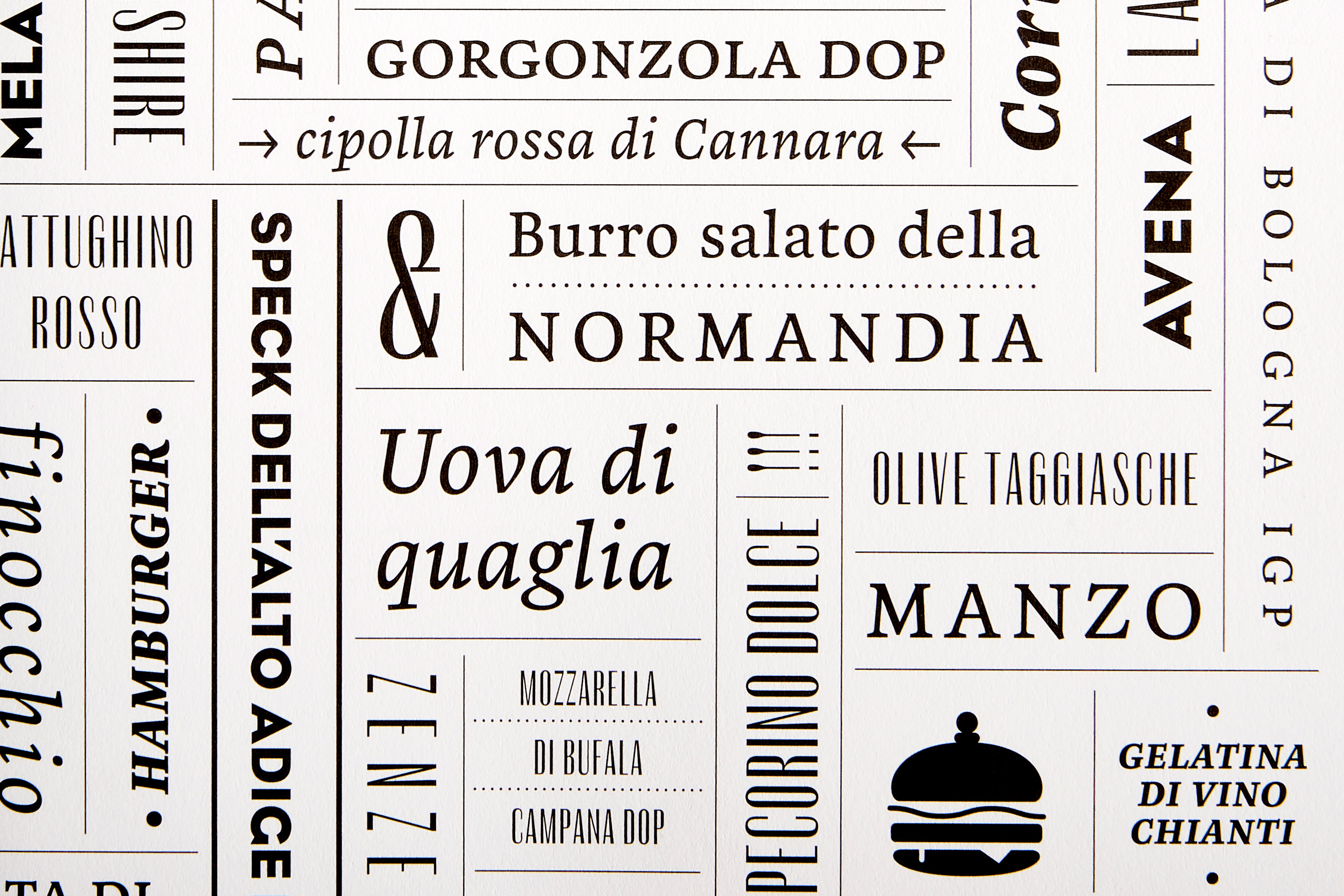 Tipiblu designed the book in which Italian Burger reveals its recipes and secrets. It was an opportunity to add lettering and microtypography to the excellent photos by Matteo Consolini. Zenon is paired with Macho Modular and an untitled contrasted sans serif. The logo uses Eagle in all caps.