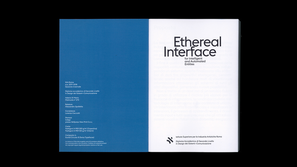 Ethereal Interface is Valerio Di Mario’s Master thesis made at ISIA Roma. It explores the ways in which different devices can communicate with each other and with their users, focusing on the field of human—computer interaction and non-verbal language.