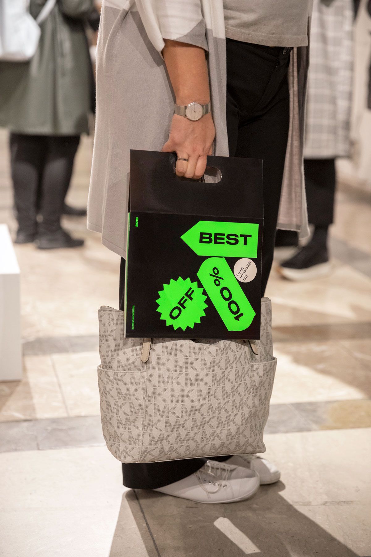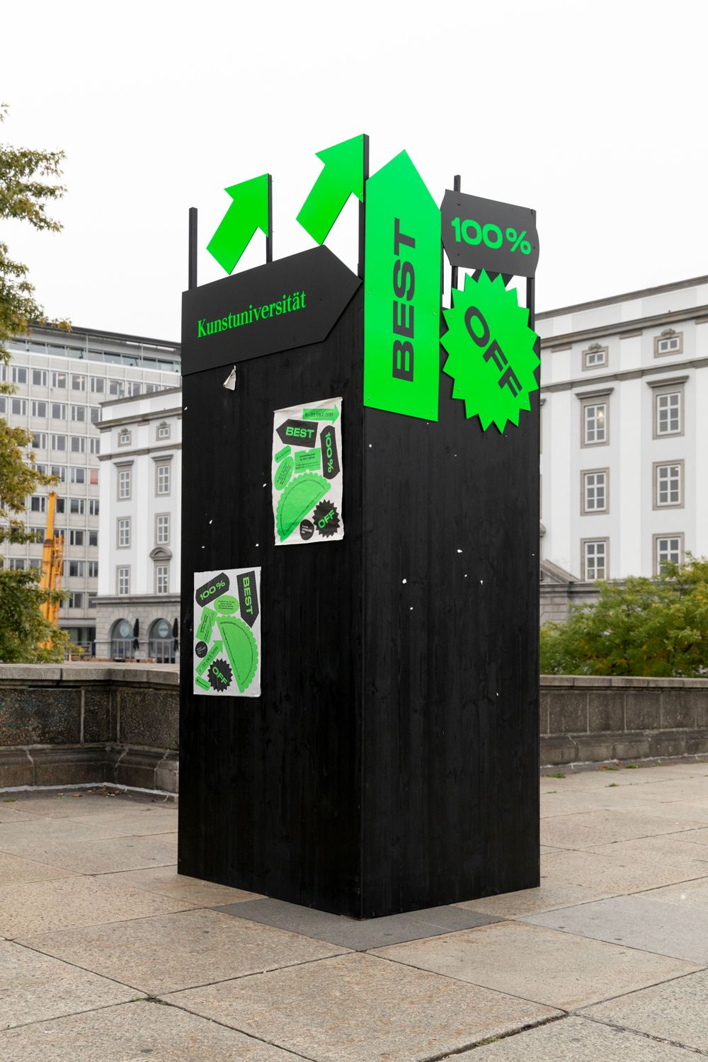 For the BestOff 2019 exhibition MOOI Design created a striking neon “sale-aesthetics” – exaggerated, shrill and in fluorescent green! Oversized large stickers in various forms served as key visuals and slogans like “100% BEST”, “100% ART” and “100% FREE” attracted many art consumers with the well-proven discount strategy.