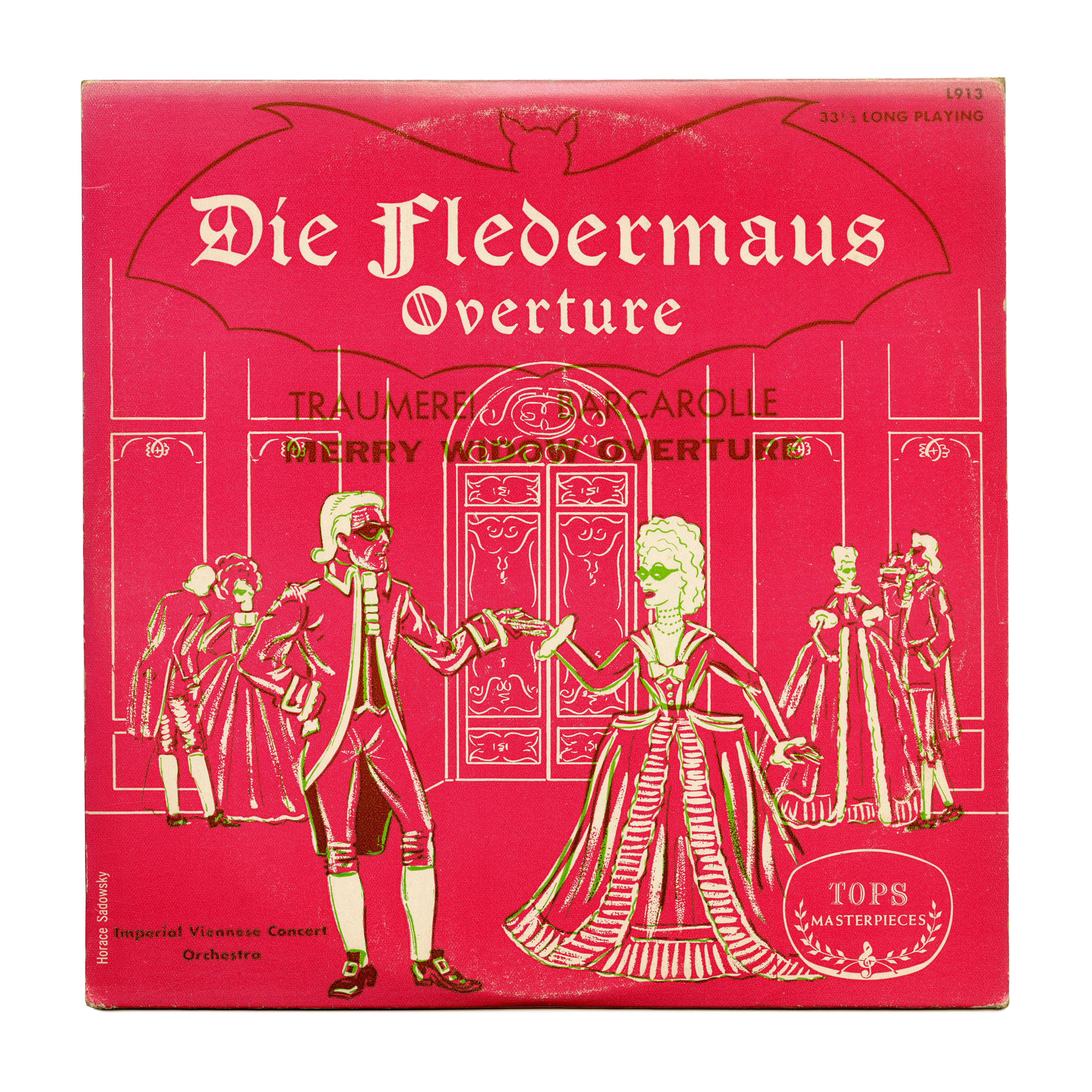 Tudor Black in a bat-shaped silhouette for the cover of Die Fledermaus Overture, a record with classical music credited to the (non-existent) Imperial Viennese Concert Orchestra and released by Tops Masterpieces Records, USA.