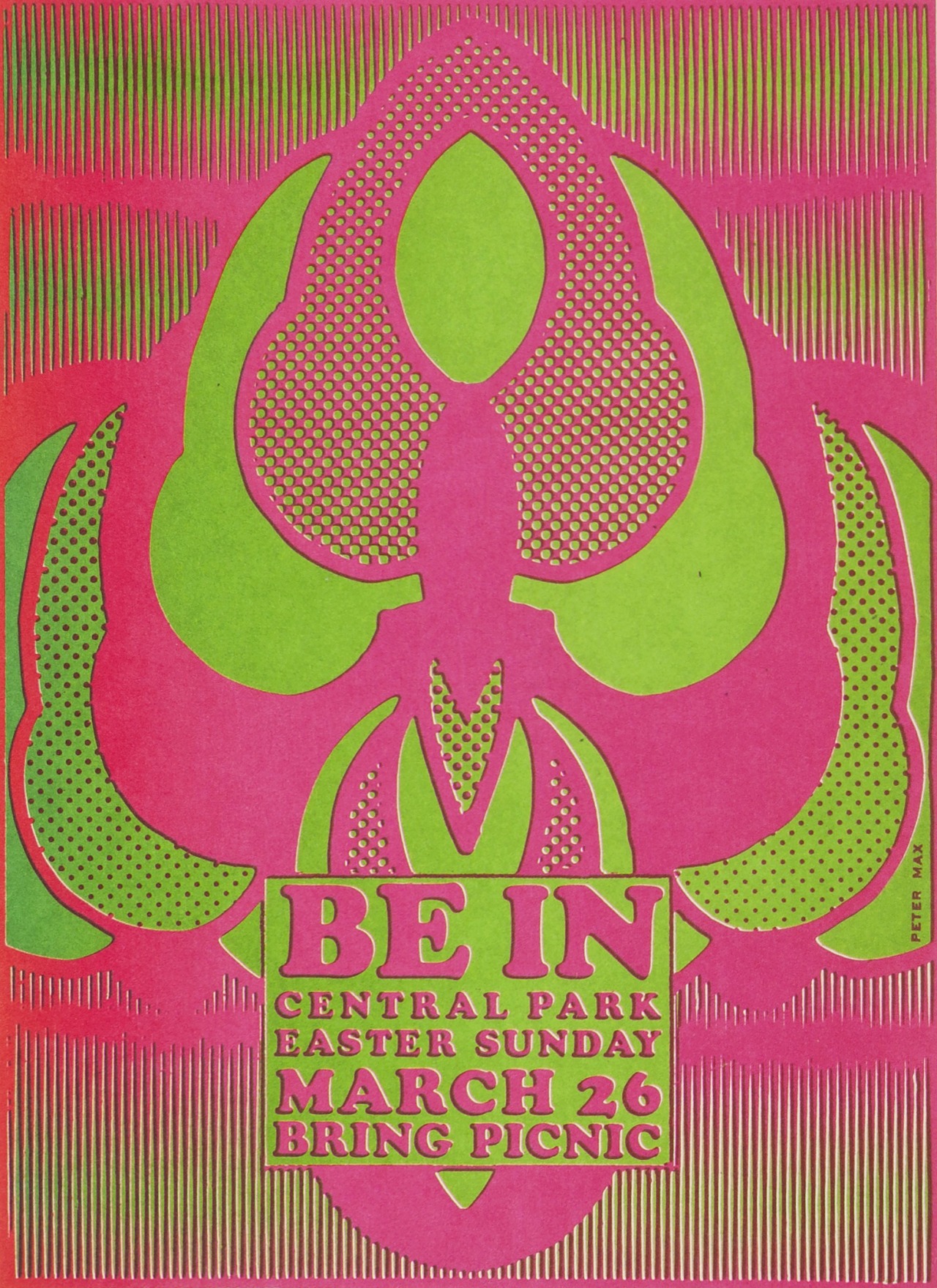 Max’s Be In poster inspires several hundred thousand “hippies” to gather in New York City’s Central Park, and immortalize the Summer of Love.