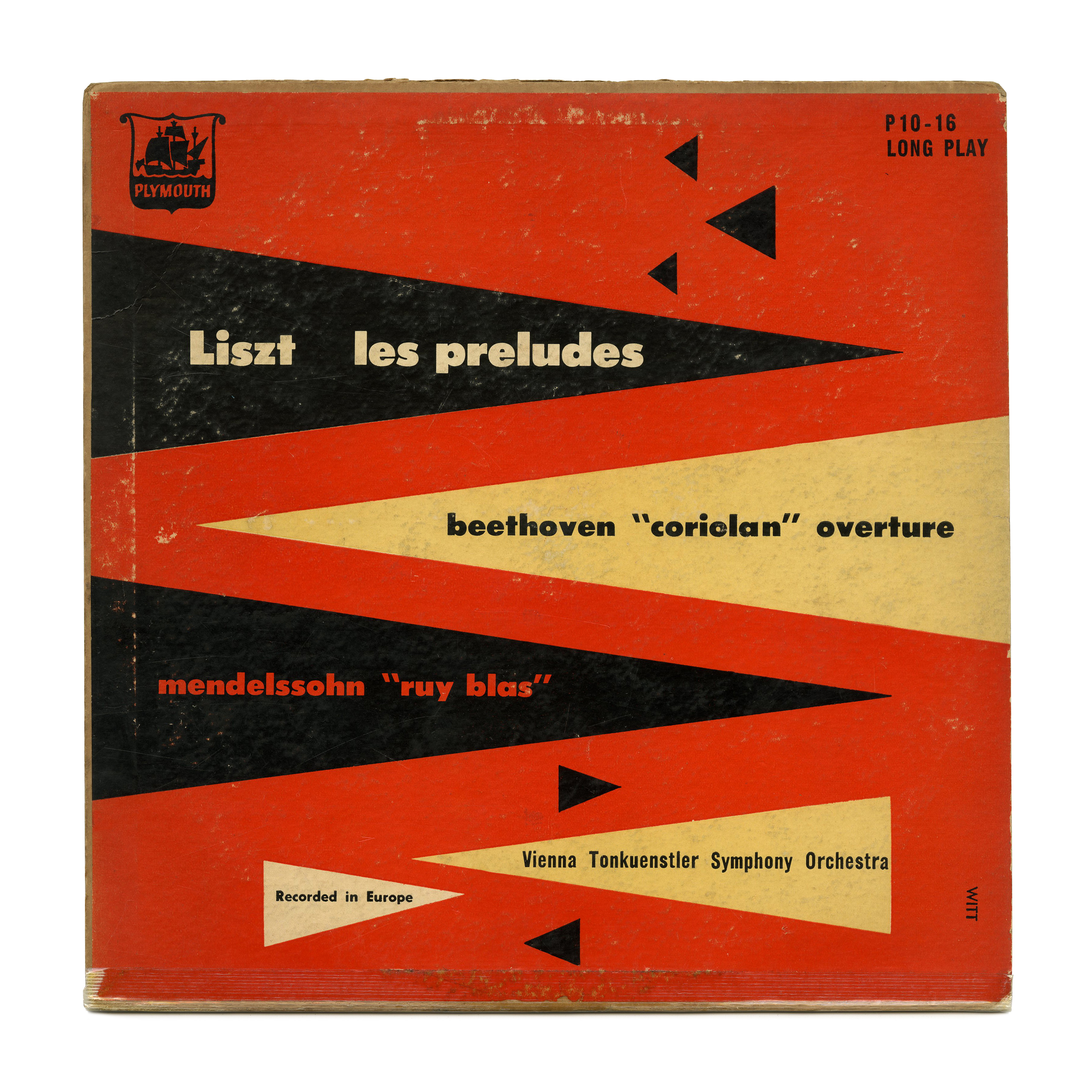 Liszt’s Les Préludes, Beethoven’s Coriolan Overture, and Mendelssohn’s Ruy Blas, performed by the Vienna Tonkünstler Symphony Orchestra and released Plymouth Records in 1952.