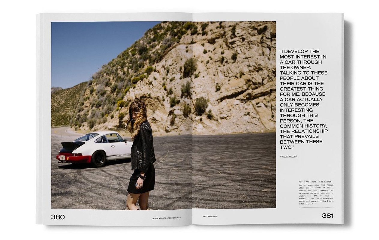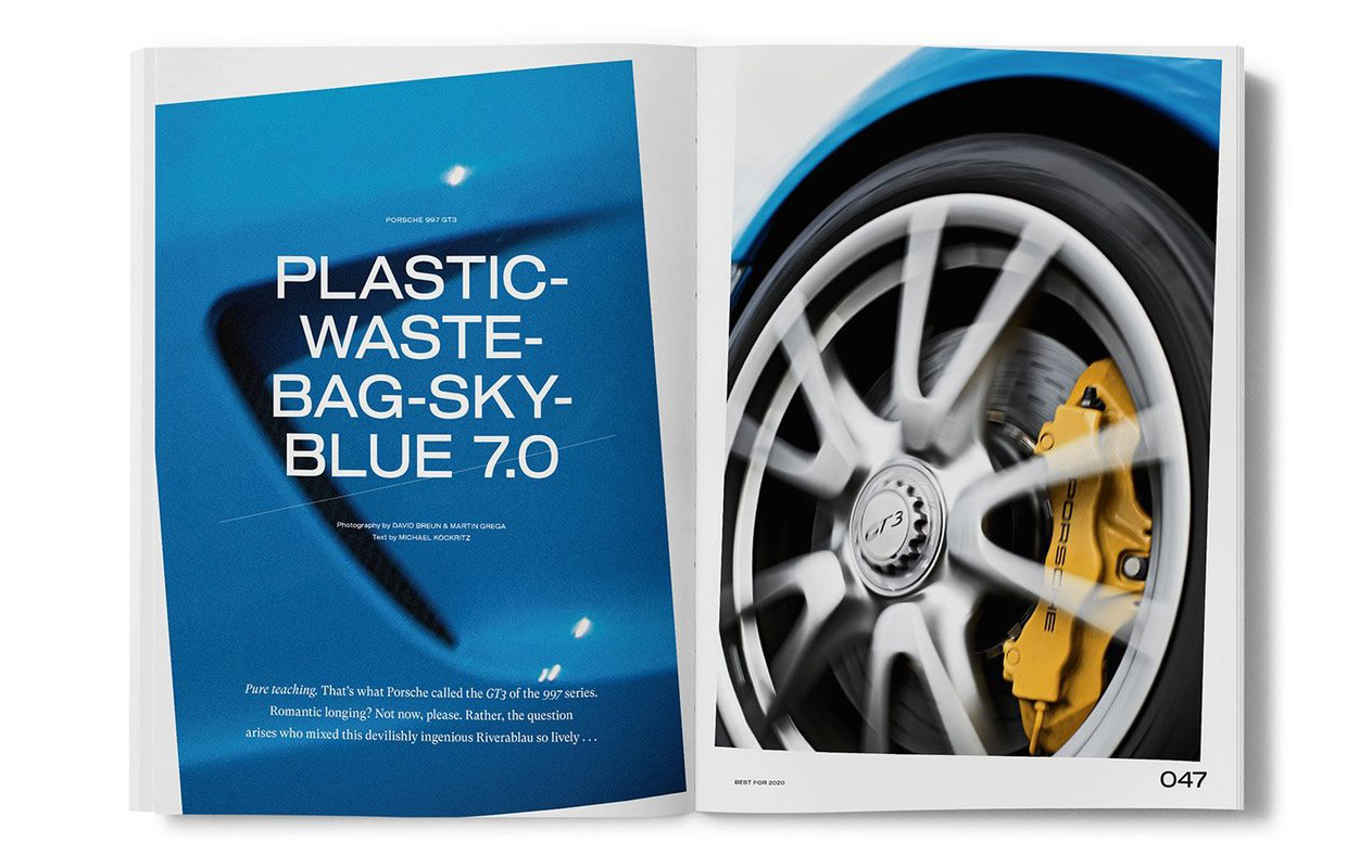 After the successful first year, the best pictures and stories appear in a 448-page coffee table bookazine. A mix of book and magazine, large format, embossed for a premium look and with four different cover versions. It is more art than it is a car book.