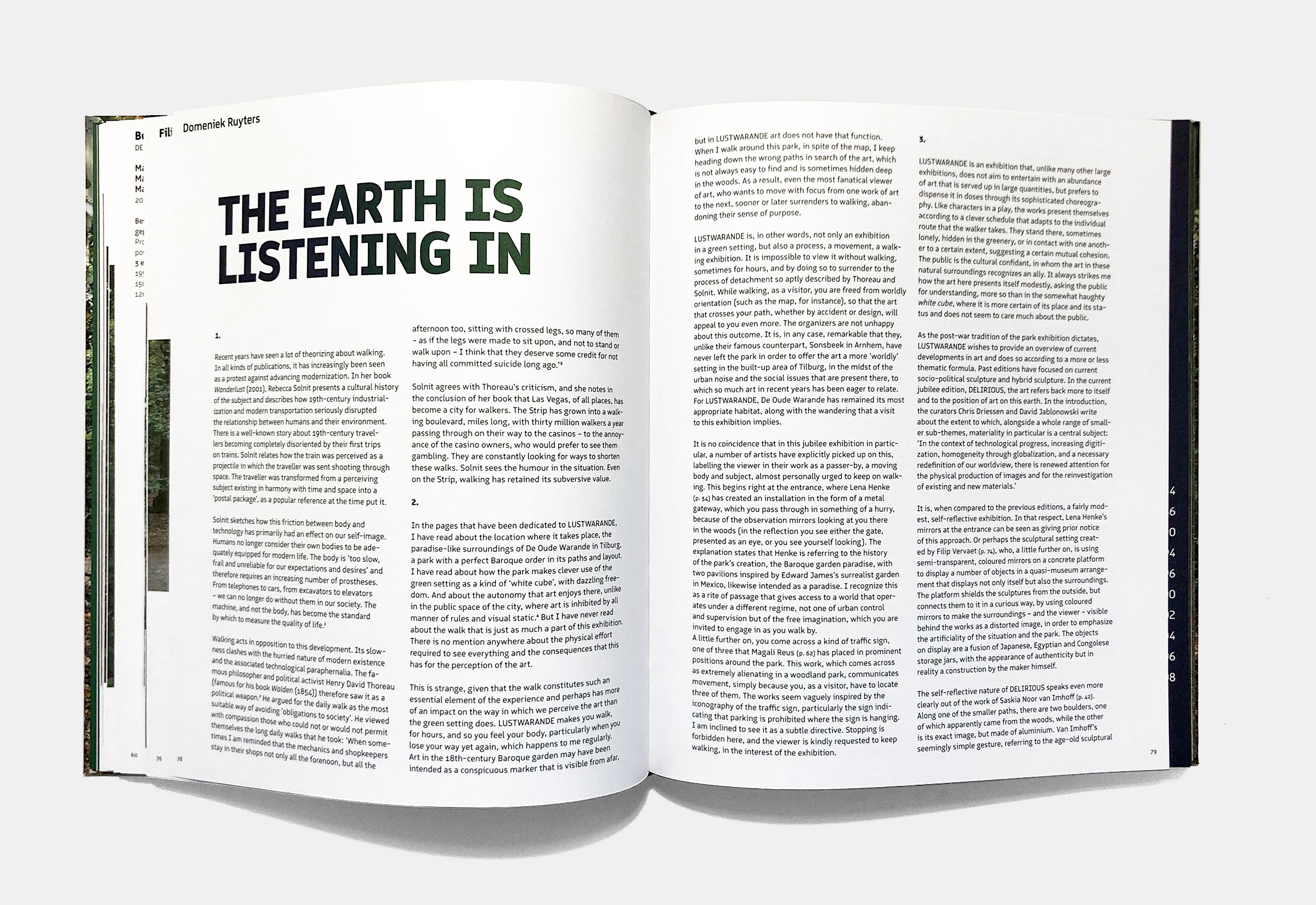 It was edited by C. Driessen and H. Van Mierlo, and published by Lustwarande. The book cover and interior is set in Logical, designed by Edgar Walthert in 2018.