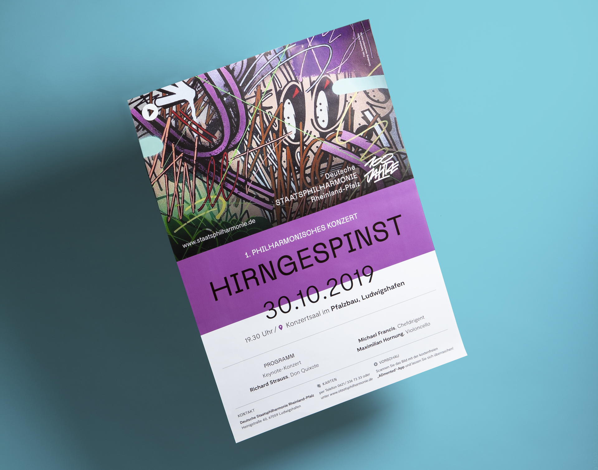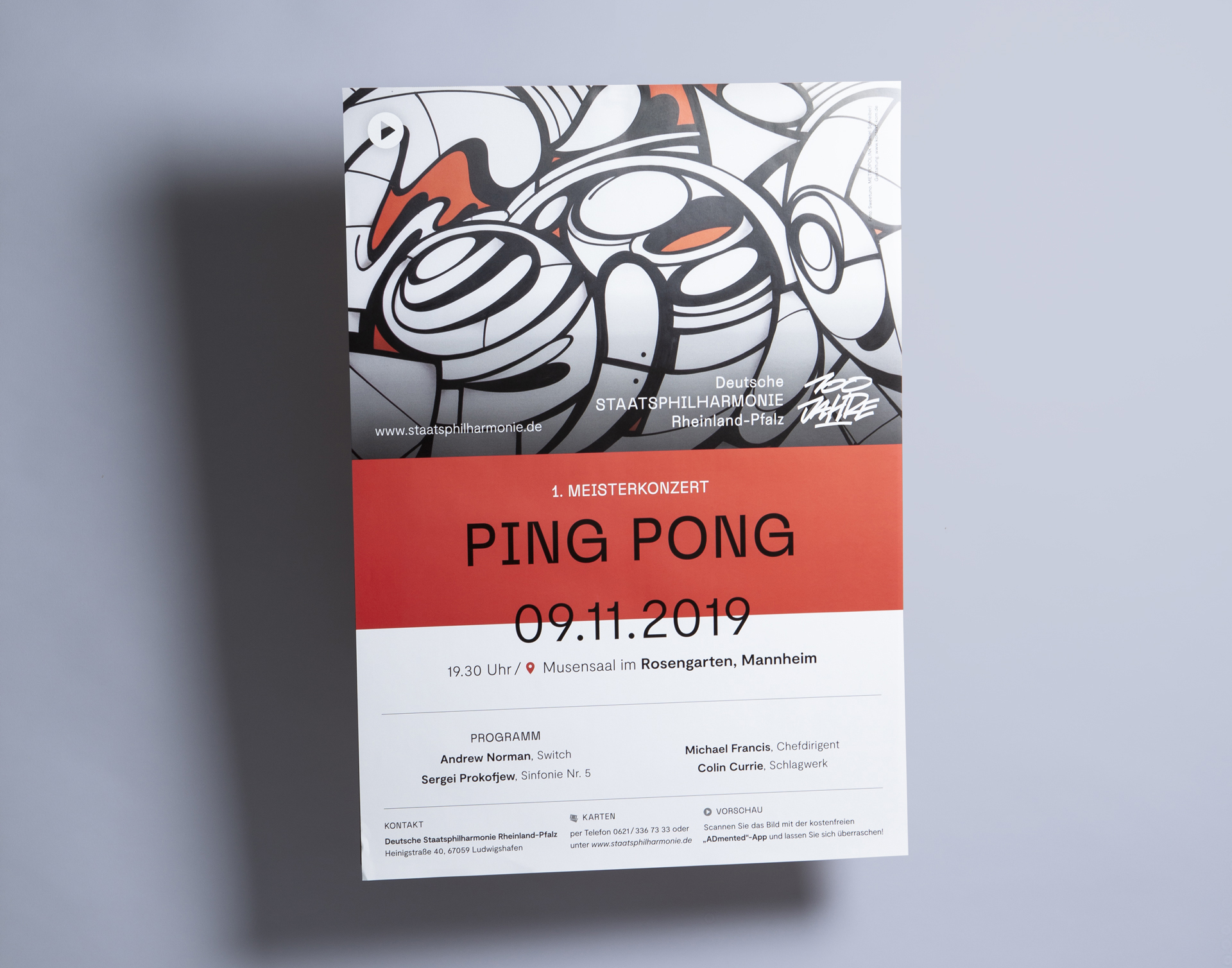 The Deutsche Staatsphilharmonie Rheinland-Pfalz (“German State Philharmonic Orchestra Rhineland-Palatinate”) is the largest and most important orchestra in the state, based in Ludwigshafen. It is considered the symphony orchestra of the Rhine-Neckar Metropolitan Region with a diverse musical spectrum: this ranges from the great symphonic music to music theater productions to film music projects. This year, the Staatsphilharmonie celebrates its 100th anniversary. For the jubilee season 2019/2020, Michael Francis will be the chief conductor.