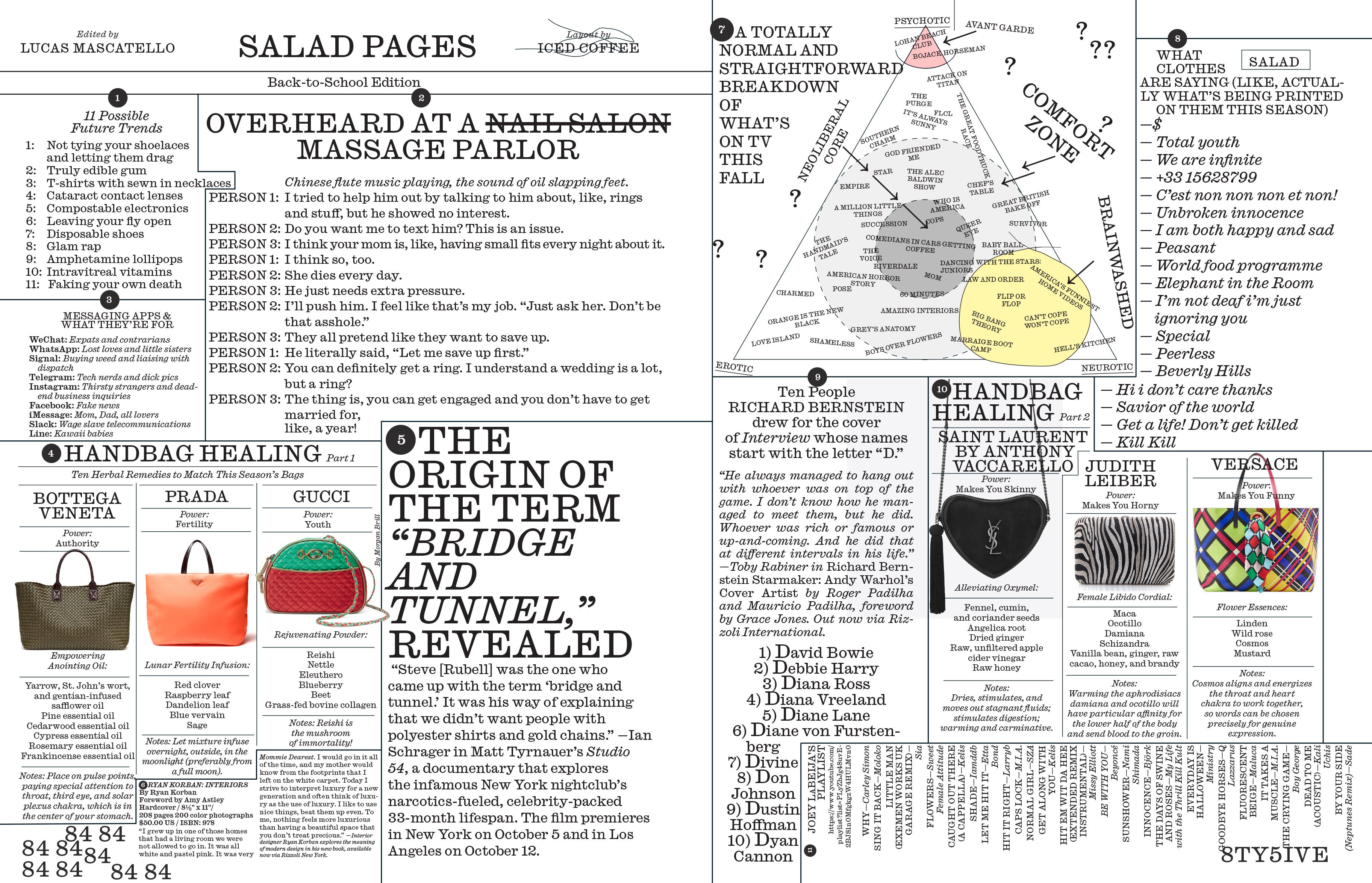 In September 2018, shortly after filing for bankruptcy, the magazine returned. This time with Mel Ottenberg (Rihanna’s Creative Director) and editorial director Richard Turley (of Bloomberg Businessweek and MTV fame). Gracing the inaugural relaunch cover was issue-one subject Agnès Varda (from the film journal days). The typography uses a recent digitization of Ionic, Caslon Ionic by Commercial Classics throughout — from headlines to body copy and webfonts, all text is set in Caslon Ionic’s Regular and Italic. For some reason, the website menu uses Old Standard and Roboto. Art Director Kurt Woerpel has some more spreads on his website.
