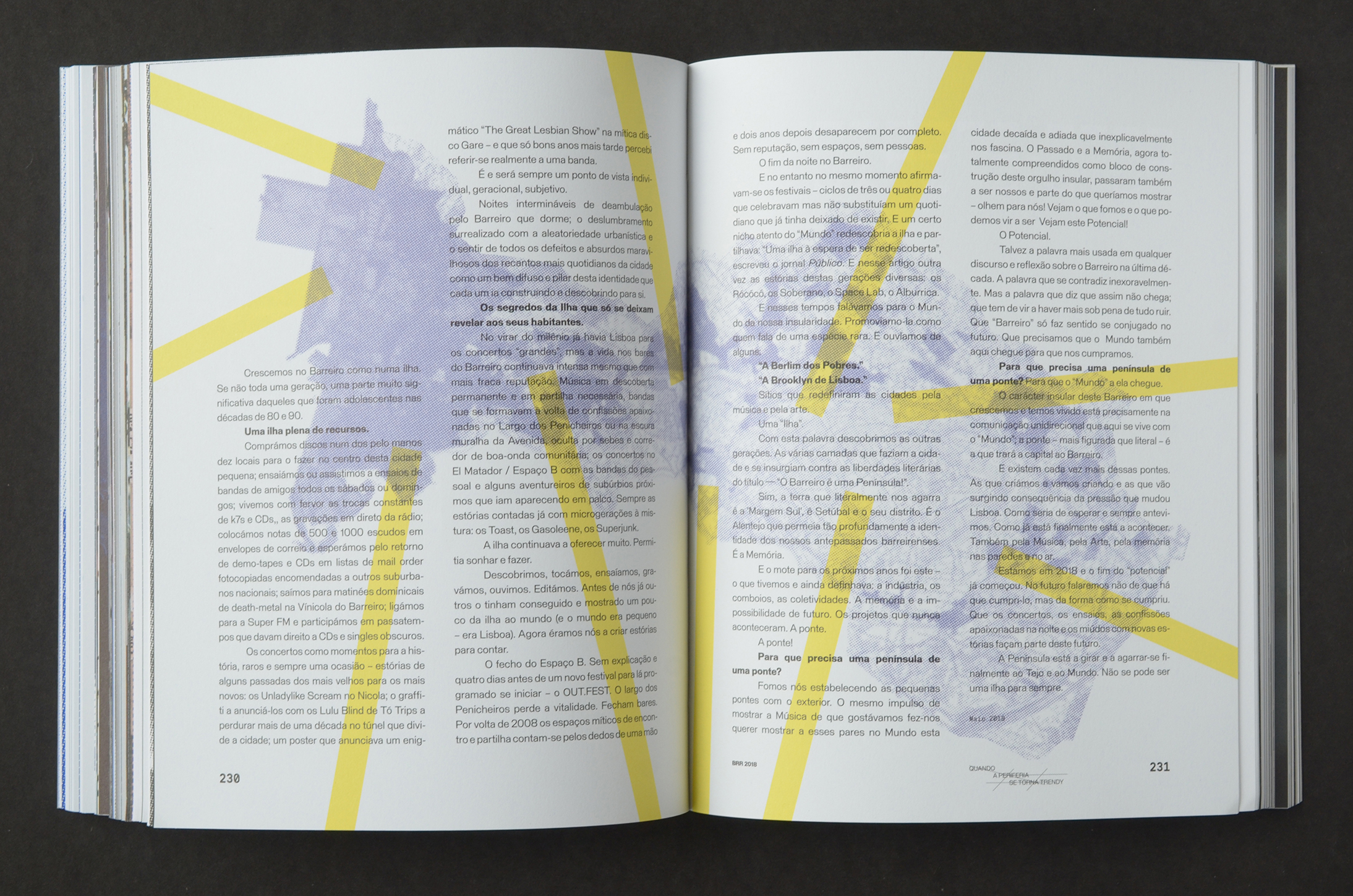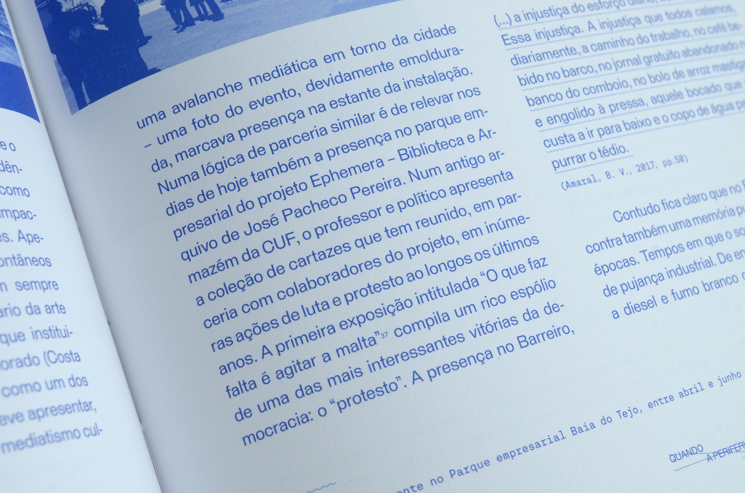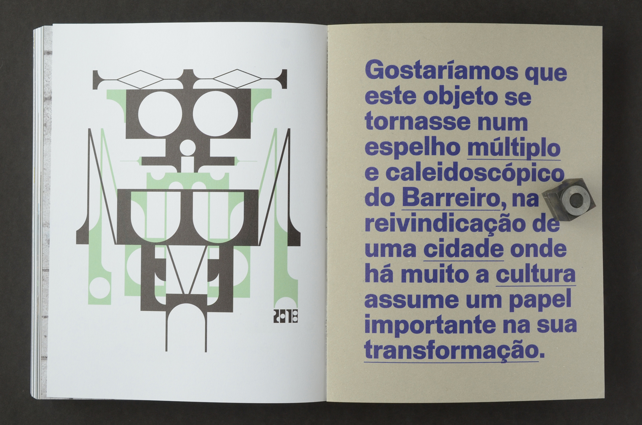 Designed by local designer José Mendes, the book brilliantly evokes the industrial historical background of Barreiro and its people, through a strong use of photography and typography. The book is set in Staff and Sul Mono alongside with José Mendes’ own constructivist font called Ferramenta de Coisas based on his memory of shapes from Barreiro factories.