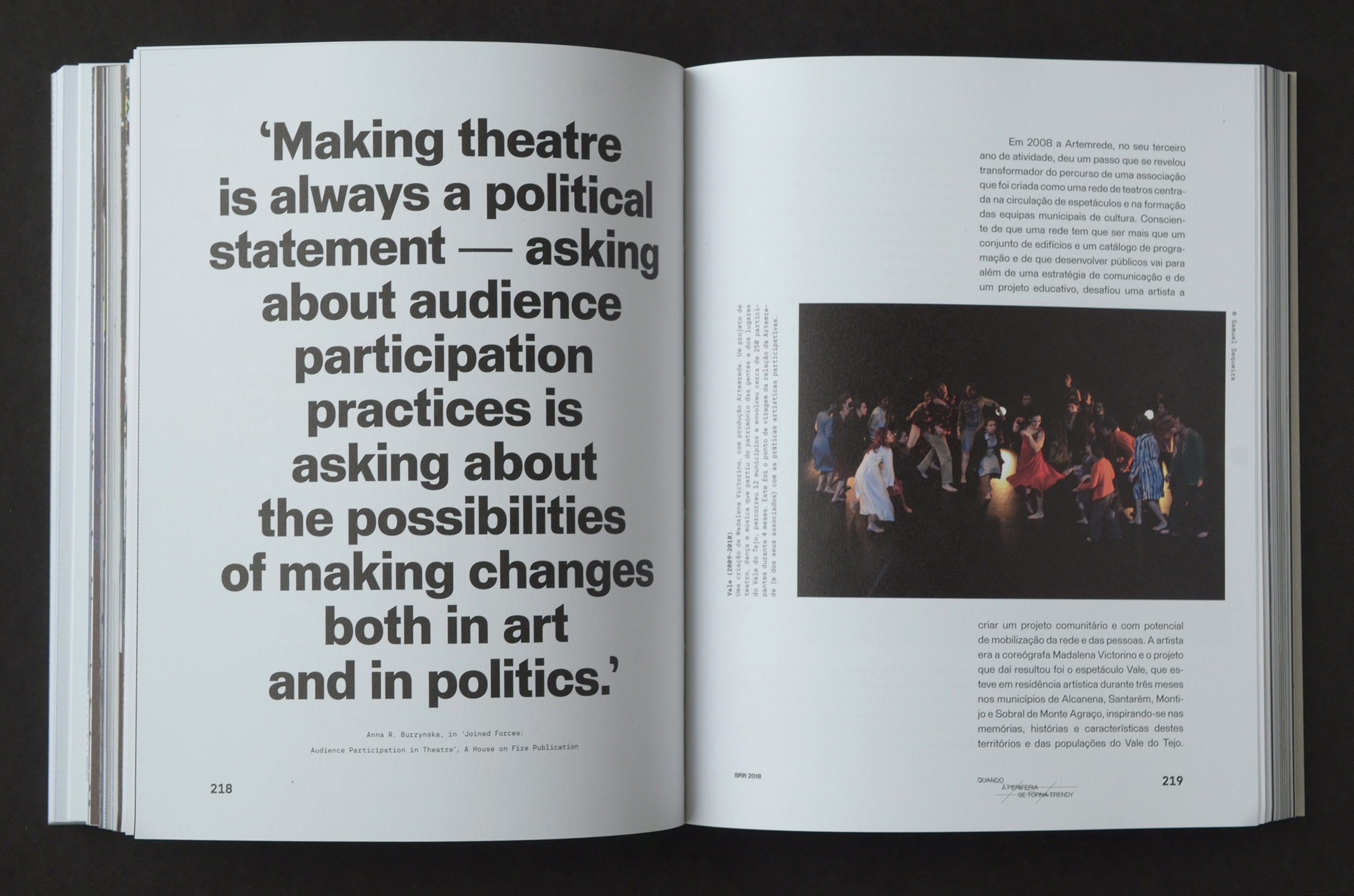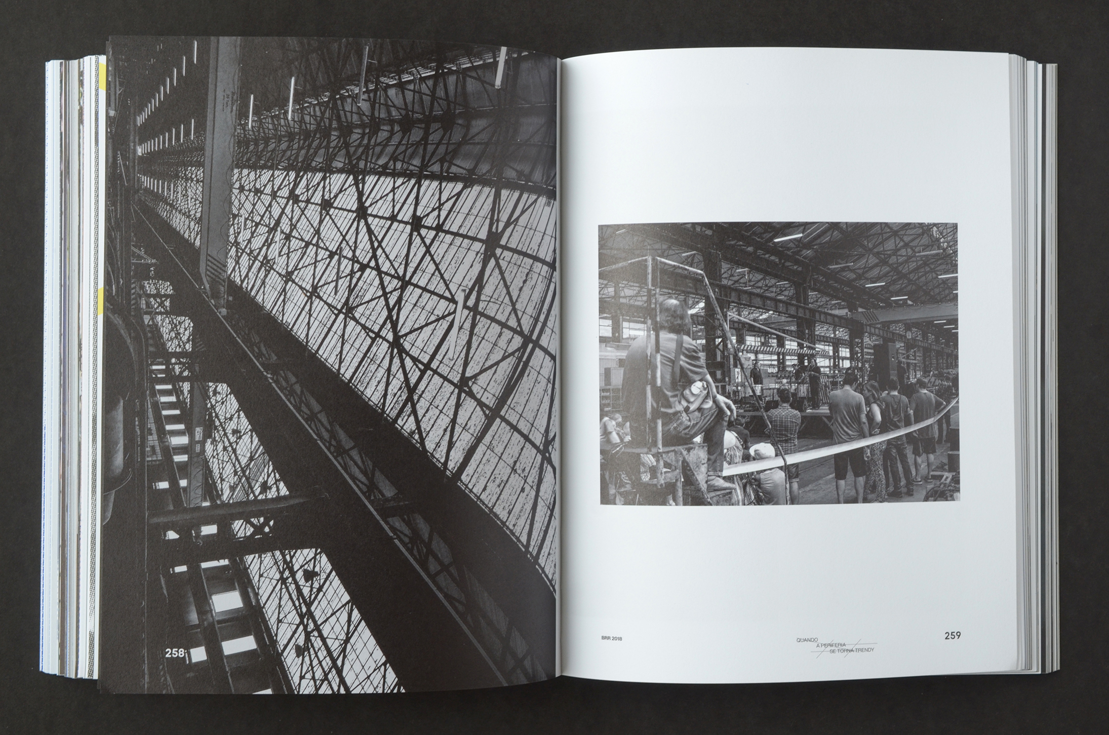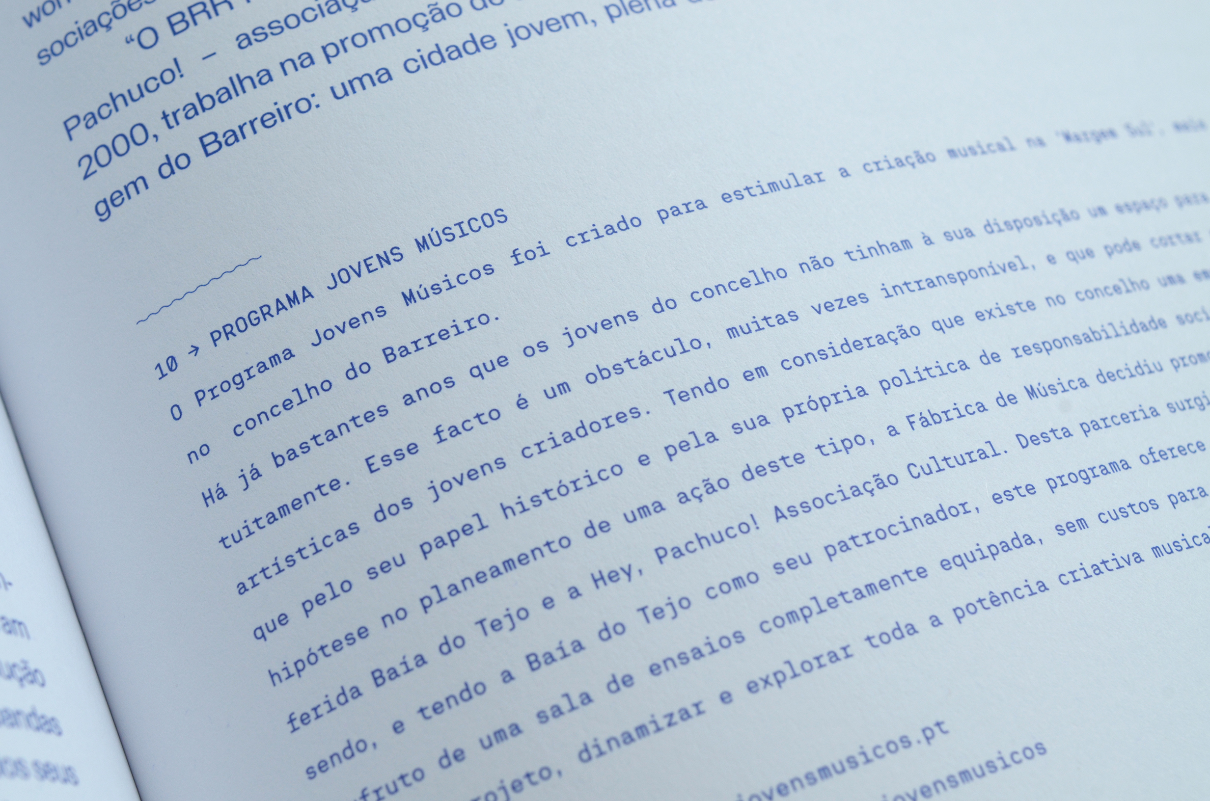 Designed by local designer José Mendes, the book brilliantly evokes the industrial historical background of Barreiro and its people, through a strong use of photography and typography. The book is set in Staff and Sul Mono alongside with José Mendes’ own constructivist font called Ferramenta de Coisas based on his memory of shapes from Barreiro factories.