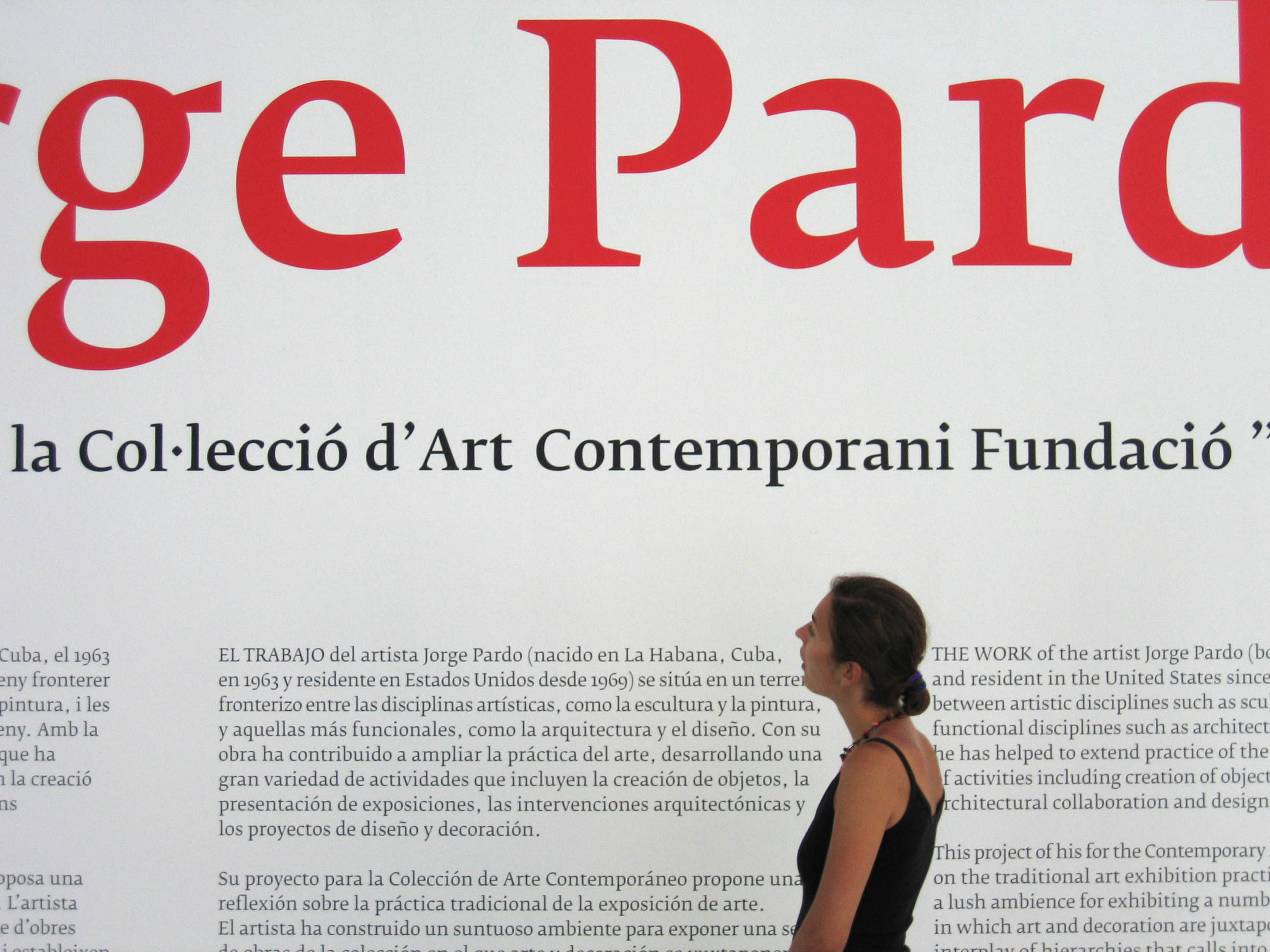 This post show a fragment of an exhibition wall at the Fundacio La Caixa in Barcelona. It’s an early use of Typotheque’s Fedra Serif A, and a rare showing of a punt volat (“flying point”) in the Fonts In Use collection of Catalan/Valencian-language uses. This exclusively Catalan variation on the interpunct used in the black line in the middle in the word “col·lecció” indicates that two neighbouring characters l each belong to a separate syllable.