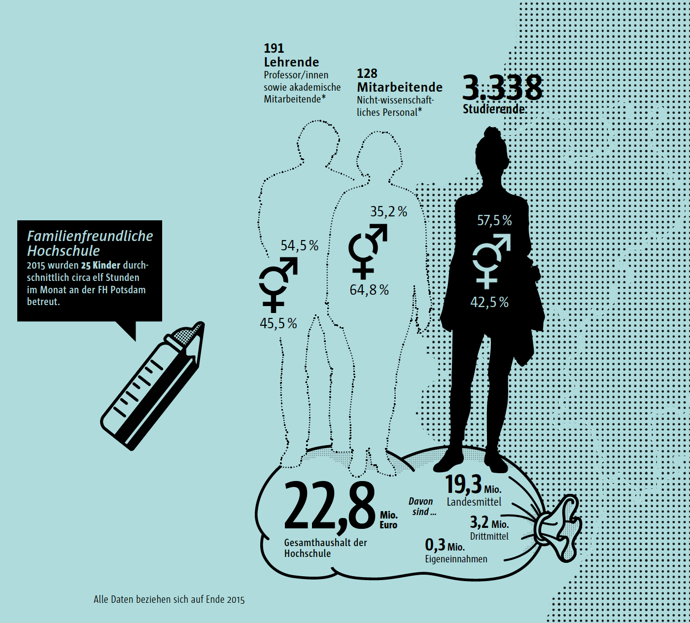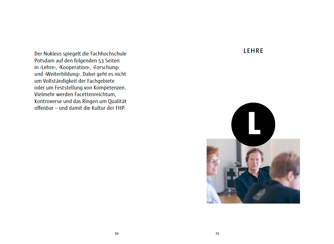 The main typeface in the book is a sans serif called Sun, which is also used in the university’s corporate design. The serif typeface that accompanies it is TheAntiquaSun. Like Sun, TheAntiqua Sun was originally designed by Luc(as) de Groot for Sun Microsystems; it is related to TheAntiqua, which itself is an extension to the Thesis type system (TheSans, TheSerif, TheMix). De Groot is a professor for type design in the university’s design department.