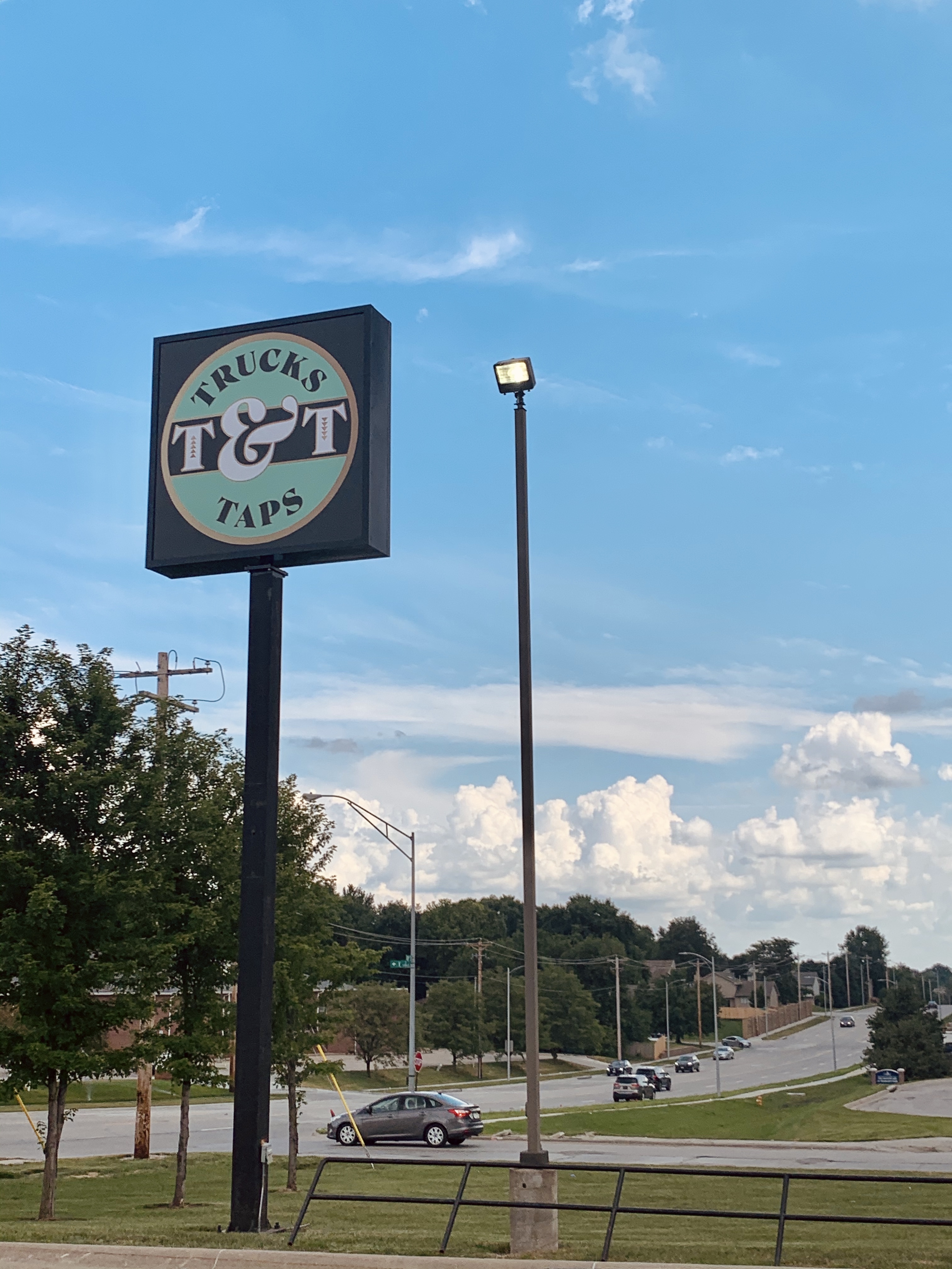 Trucks & Taps is a food truck hub based out of an old Sonic Drive In building. They will have a few food trucks that use the space as a permanent home and commissary kitchen, with rotating guest food trucks. Underneath the canopy of the old Sonic structure, they have created an outdoor patio space with games.