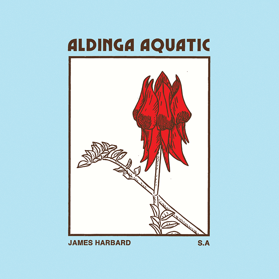 Aldinga Aquatic is an ambient EP that features field recordings of the ocean, wildlife and ambiance that is coastal South Australia. I illustrated the Desert Sturt Pea, the floral emblem of South Australia and presented it as if it were a cover to an old book or a vintage postcard.