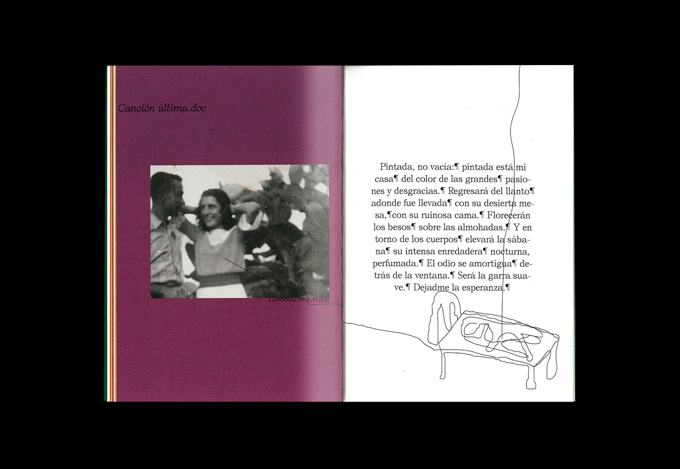 Poemas, Miguel Hernández Contributed by Borja Flores on Feb 12th, 2020. Artwork published in July 2019. Source: www.behance.net Photo: Borja Flores. Borja Flores. License: All Rights Reserved. This book is a personal work designed in honor of poet Miguel Hernández (1910–1942), who fought alongside the Republicans in the Spanish Civil War. The book consists of poems and a biography of the poet, and my illustrations inspired by his poems. More images can be found on Behance. Self Modern is used throughout. Source: www.behance.net Borja Flores. License: All Rights Reserved. Source: www.behance.net Borja Flores. License: All Rights Reserved. Source: www.behance.net Borja Flores. License: All Rights Reserved. Source: www.behance.net Borja Flores. License: All Rights Reserved. Source: www.behance.net Borja Flores. License: All Rights Reserved. Source: www.behance.net Borja Flores. License: All Rights Reserved. Source: www.behance.net Borja Flores. License: All Rights Reserved. Source: www.behance.net Borja Flores. License: All Rights Reserved. Typefaces More about Self ModernGet Self Modern Formats Books (6543) Art/Illustration (502) Topics Literature (3022) Activism (1115) Designers/Agencies Borja Flores (5) Tagged withbook covers (5877)book interiors (3676)Miguel Hernández (1)Spanish (language) (815)self-published (315)limited editions (434)one typeface family (1683)type on a curve (1130)staircase lines (77)pilcrow (¶) (40)protest (120)history (390)war (118)poetry (391)Spanish Civil War (6)text buildup (32)repetition (782) Artwork location Spain (1053) In Setsserif (Joe Sharples) (7)Inspiration (Ben Dickey) (17)Hot (jean-alexandre Jean) (106)HIP HOP FASHION EV (Gloria Assé Elogo) (6)Editorial (nhật anh Nguyễn) (4)Like (Yijie Wang) (72)Books (Kyle Kabel) (163)Editorial (Helena Llop) (5)Colors in Use (Encelado) (232)Macro typography (Encelado) (75)Kool Thing (Encelado) (78) Post a comment Name Email – will not be published Website Your response Submit Comment More Self Modern in use Panorama by Lisa Mouchet2019Oscar GinterContributed by Lucas Le Bihan Staff Pick Épione2018Studio Fire WorkContributed by Lucas Le Bihan Mart Stam Preis 20232024Vreni KnödlerContributed by Lucas Le Bihan Staff Pick Sponsor More in Literature Řekni mi, kdo jsi! by Eva Kantůrková2012Jana VahalíkováStudio MarvilContributed by TypeTogether Staff Pick Herodes – Ernest Claes (De Blauwe Snoeckjes)1942Fernand BaudinContributed by Matthijs Sluiter Staff Pick La Septième Obsession, “Twin Peaks” issuec. 2021Alexandre CanoContributed by Alexandre Cano Archive of Our Own2008Organization for Transformative WorksContributed by Antonia Taylor More in Books Fondo del Estado de México Editions2014Juan Carlos CueContributed by PampaType Team The Cinema of Carl Dreyer by Tom Milne1971unknownContributed by Florian Hardwig Letterpress Workers catalogue 20192019Fabrizio FalconeFabrizio RadaelliClaudio MadellaContributed by Fabrizio Falcone Kaesz Homes 1925–1960 exhibition catalog2024Anna FarkasAnagraphicContributed by Anna Farkas More Fonts In Use Guides of Bhutan2019Aki GuerineauContributed by Aki Guerineau Staff Pick FRAC Lorraine2004Nik ThoenenMaja GusbertiAnnja KrautgasserContributed by Thomas Hirter Staff Pick La literatura alemana desde Thomas Mann by Hans Mayer1970Daniel GilContributed by Florian Hardwig Staff Pick Shasha Mobile Film Festival2020NtsalNardine ShenoudaNada SultanContributed by Chloë Miller Staff Pick