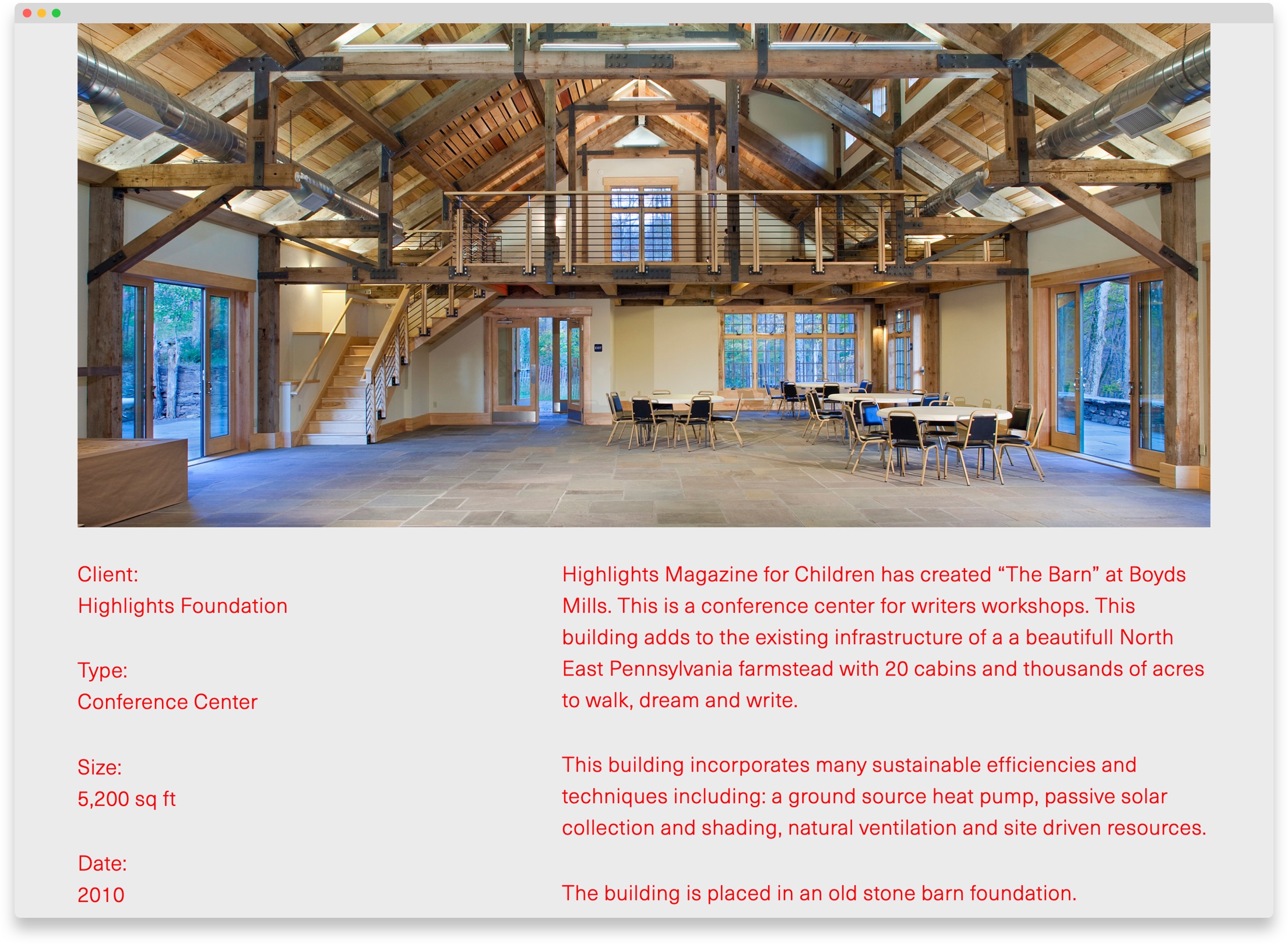 Hampton Architecture views design as the first signal of human intention. From this vantage point, they create passive and active architectural solutions, employing both sustainable materials and construction methods. Hampton provides an integrated approach to architecture, linking the natural ecology of a site and local resources to the final built solution.