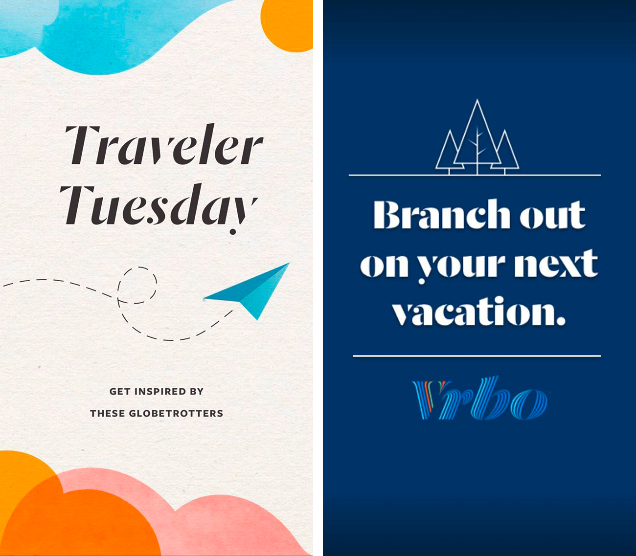 A modified Dala Prisma by Commercial Type is used for the logo of Vrbo. Founded in 1995 and originally known as Vacation Rentals by Owner (V.R.B.O.), the lodging company rebranded in March 2019 and introduced a new logo and pronunciation. The complimentary typeface used for the slogan (“Travel better together”) and for the website text is Freight Sans by GarageFonts. Instagram stories additionally use various styles of Dala Moa.