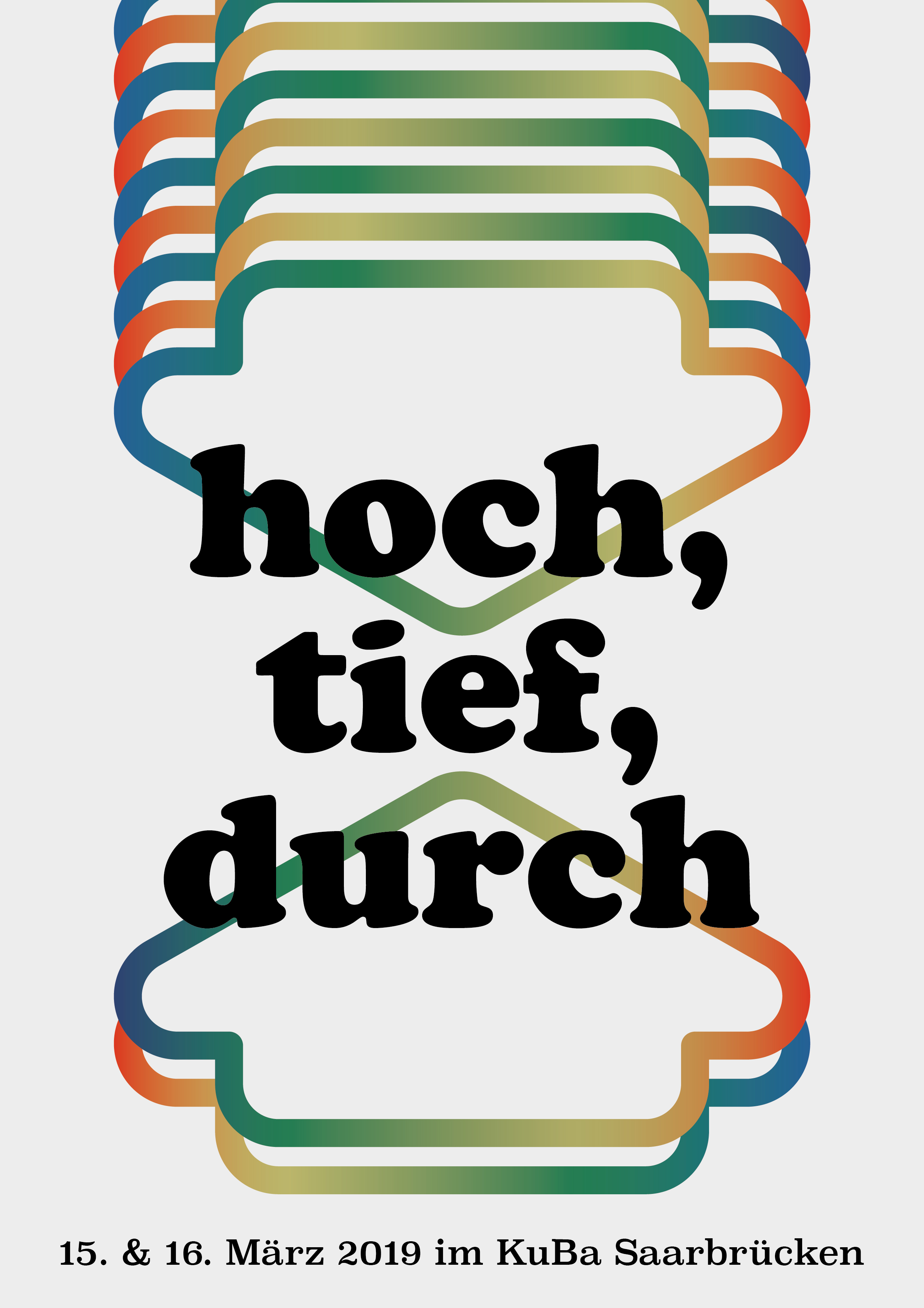 The German title “hoch, tief, durch” (high, low, through) stands for three types of printing that we use in our workshops at HBKsaar: Hochdruck means relief printing, Tiefdruck means intaglio and Durchdruck is for screenprint/stencilprint.