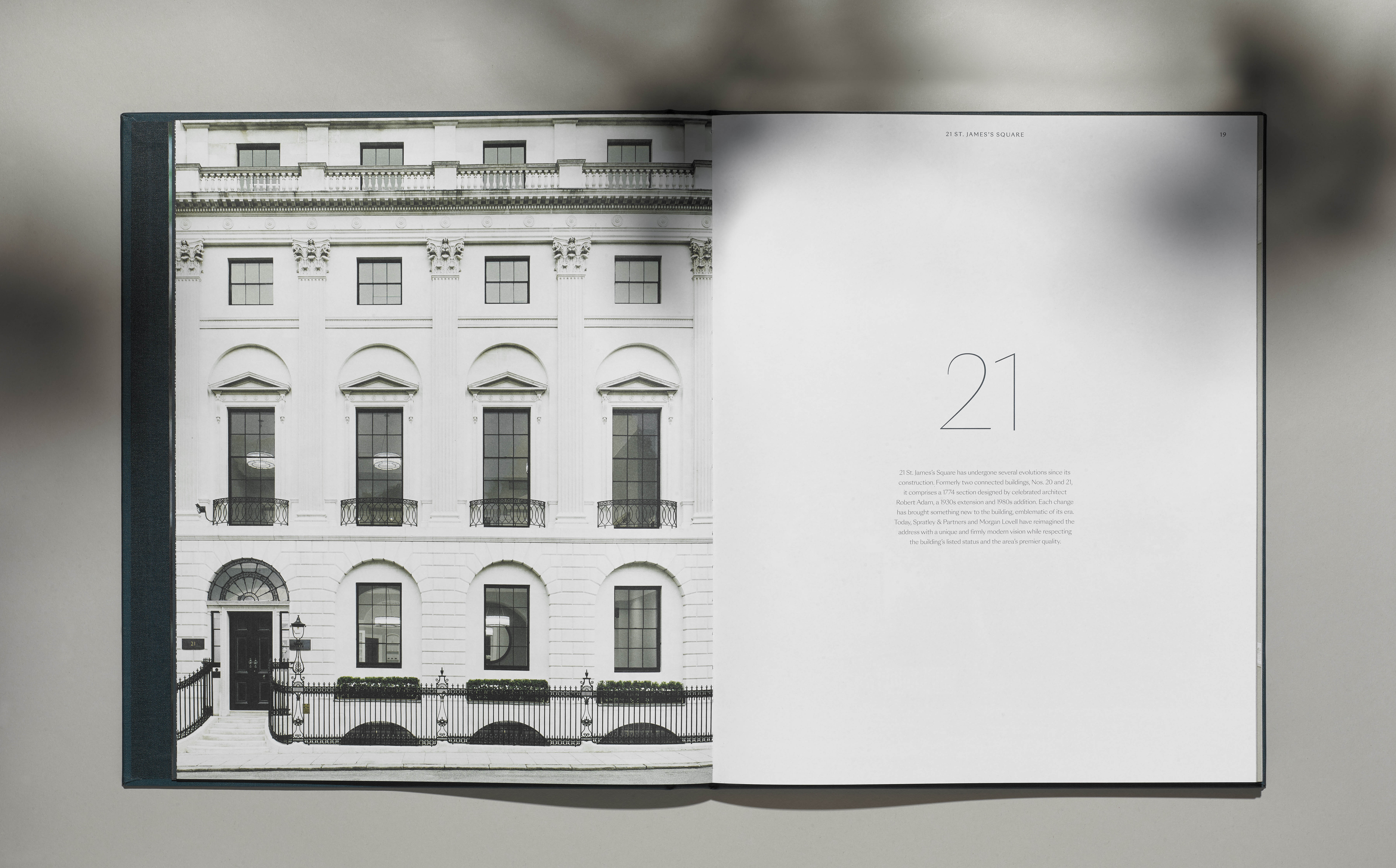 A 160 page Swiss bound coffee table book designed for Columbia Threadneedle Investments to support the leasing campaign of 21 St James’s Square. Interior photography by Rory Gardiner and portraits by Mark Manzi, the book also features interviews with business owners and royal purveyors who embodied the spirit of St. James’s, among them Jermyn Street perfumers Floris, cheesemongers Paxton & Whitfield and wine merchant Berry Bros & Rudd.