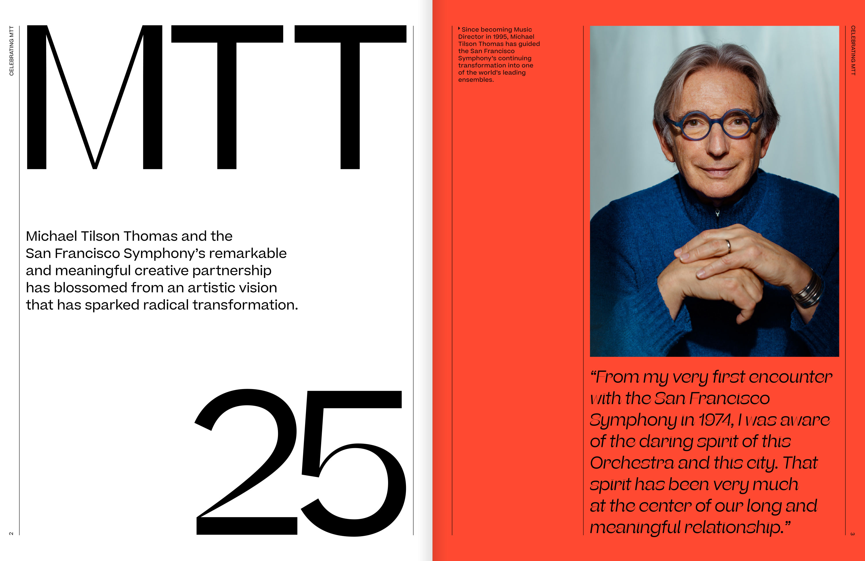 In 2020, San Francisco Symphony celebrated the 25th and final season of the acclaimed Music Director Michael Tilson Thomas, who has guided the organization into one of the world’s leading ensembles. San Francisco studio Manual was commissioned to update the identity and design a campaign for these remarkable milestones and Thomas’s final season in 2019–2020.