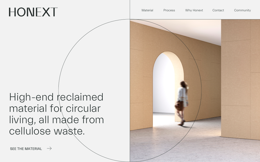 Honext is a high-end material for circular living, all made from cellulose waste.