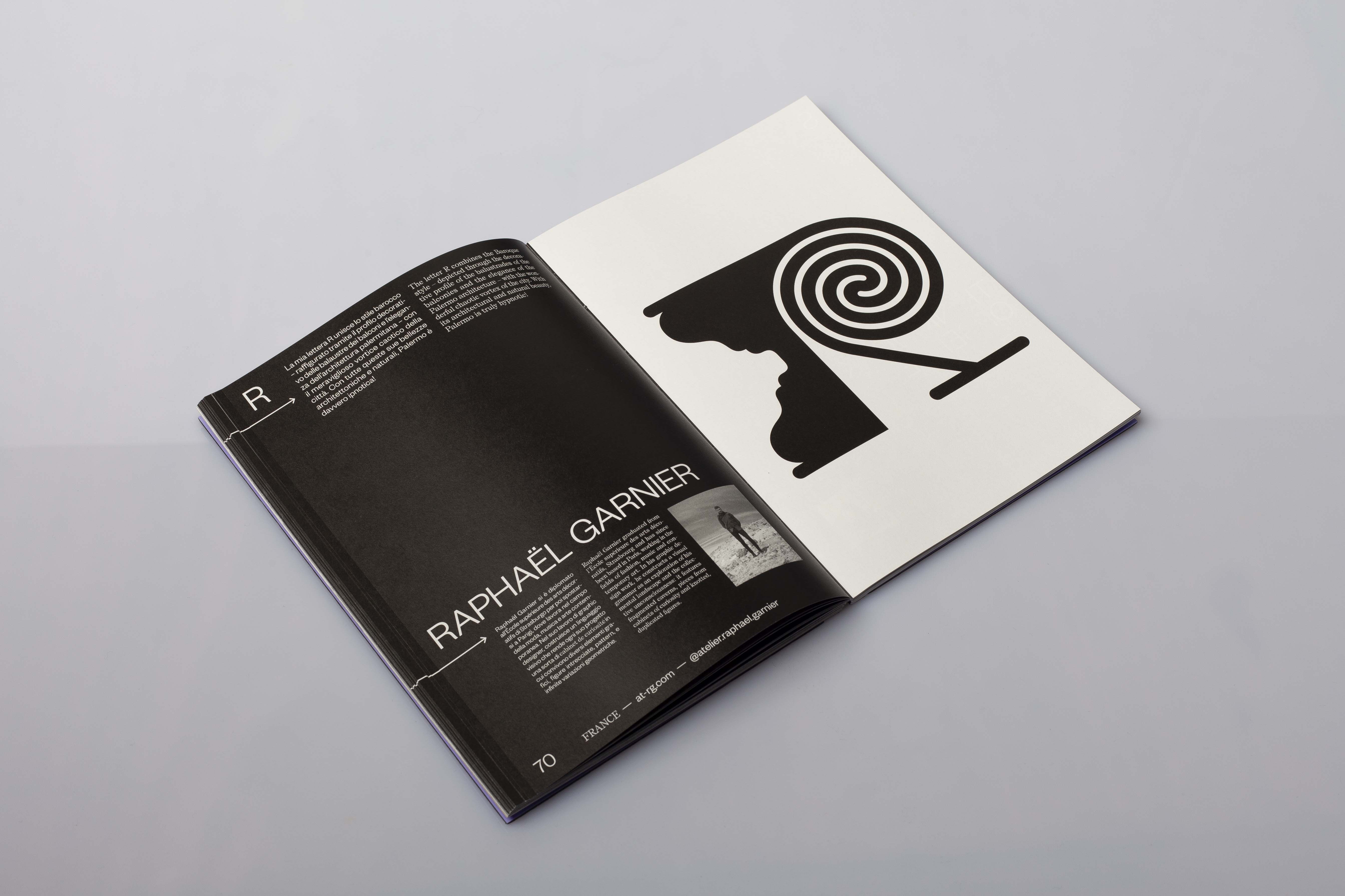 Thirty-two international designers narrate Palermo’s cultural identity: each guest was invited to express in a graphic way their own vision of the city through the design of a single letter of the alphabet. One single type. The uniqueness of Palermo is expressed by each character, while the sum of the letters creates a dissonant alphabet, consistent with the ever changing, multicultural nature of the city.