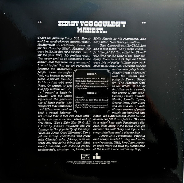 Sorry You Couldn’t Make It is the 23rd(!) full-length album from legendary soul musician Swamp Dogg, released today by Joyful Noise Recordings and Pioneer Works Press.