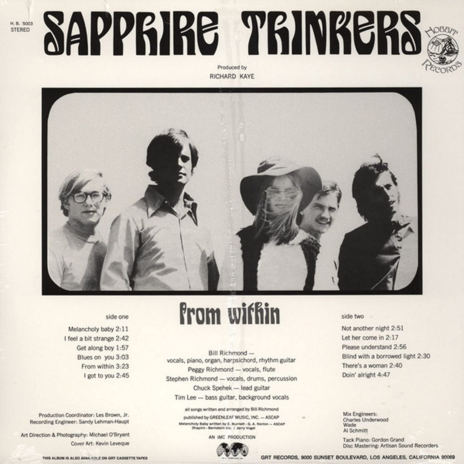 From Within is the only album release by Sapphire Thinkers, and “a very appealing example of ’60s sunshine pop, similar in sound to other LA co-ed groups like the Mamas and Papas and the Peanut Butter Conspiracy, but with a more underground sensibility.” — Tiny Idols