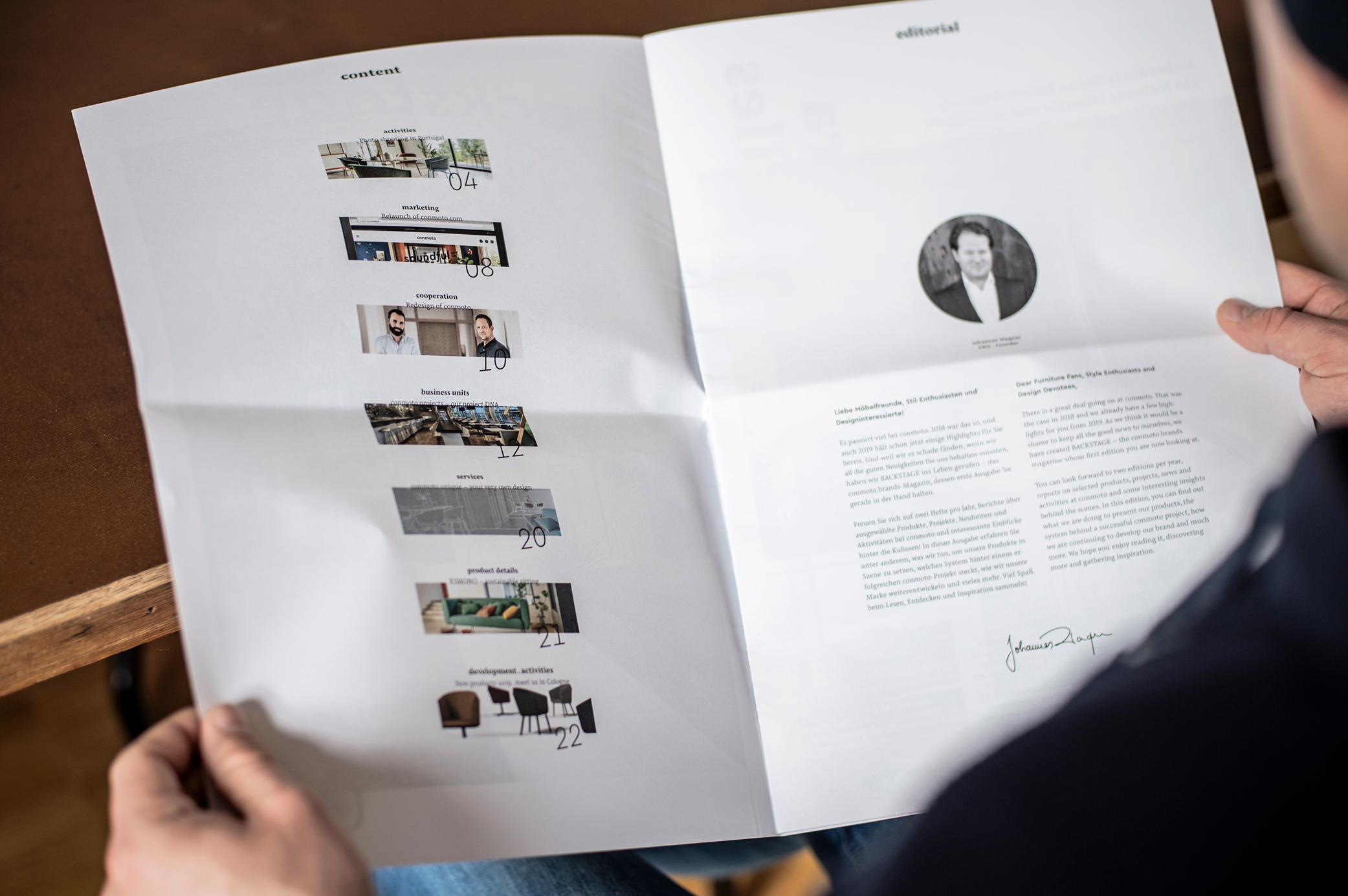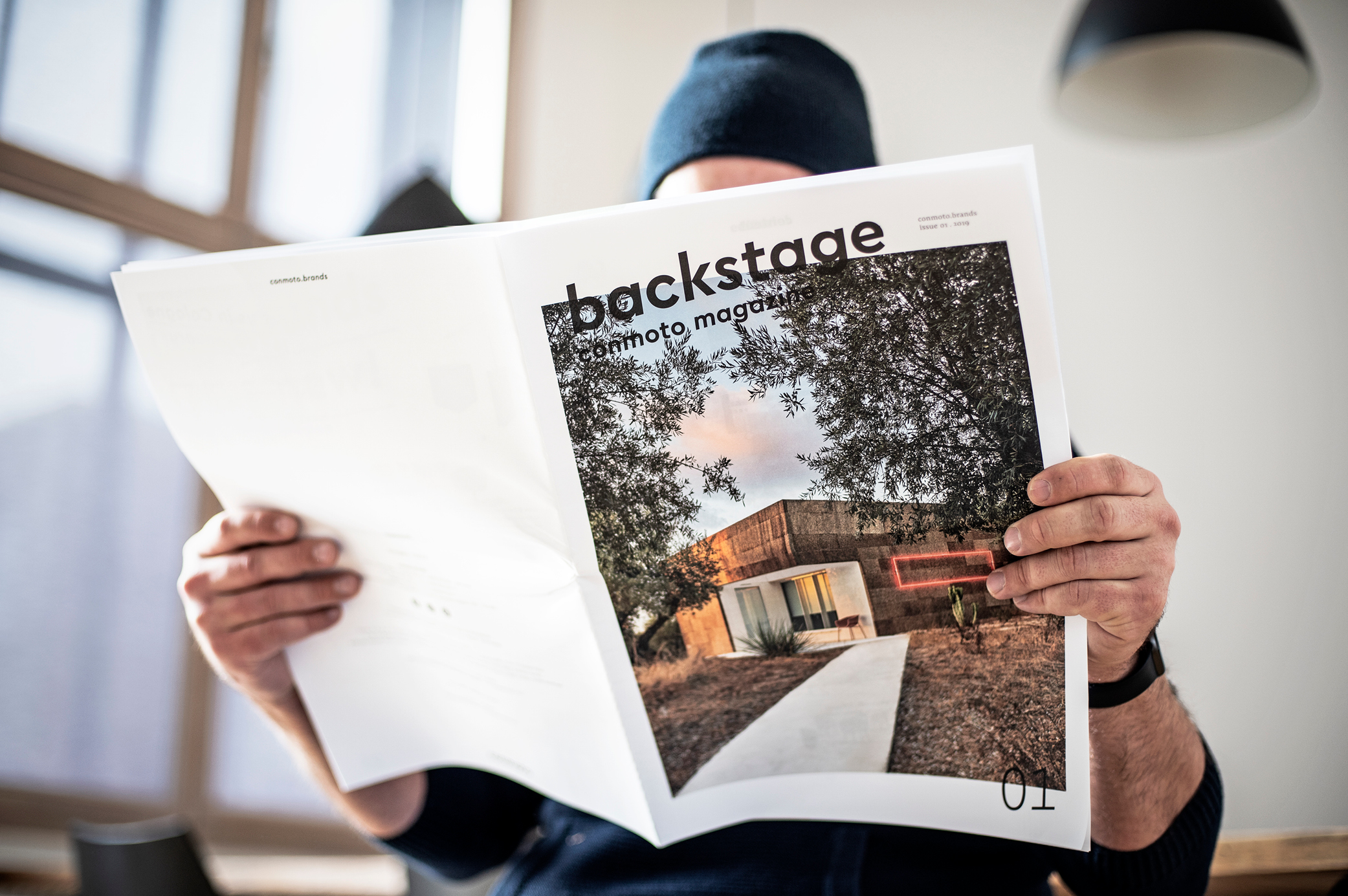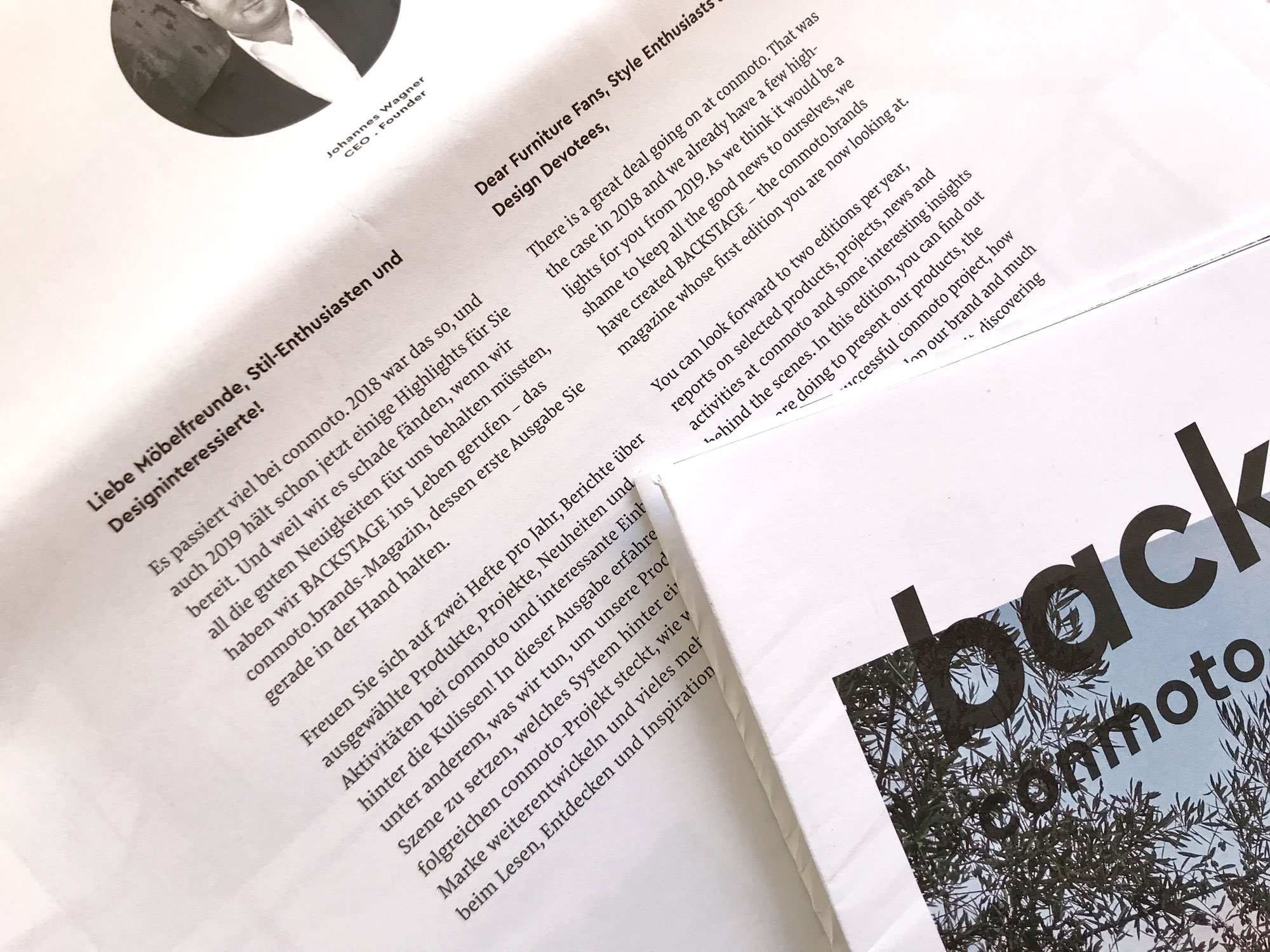 In order to keep their friends up to speed with the company’s activities, conmoto now have the semi-annual magazine backstage. Based on the format of a daily newspaper, its fresh and clear design expands on conmoto’s visual identity by supplementing Cera with Pensum to give extended text the appropriate care and atmosphere.