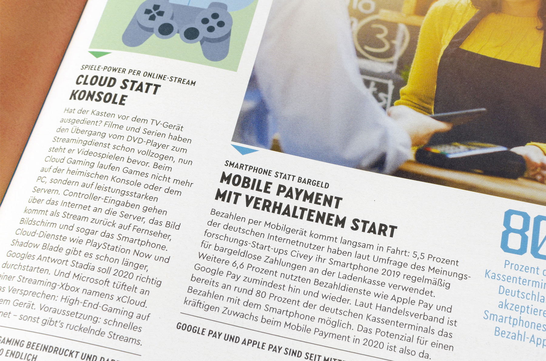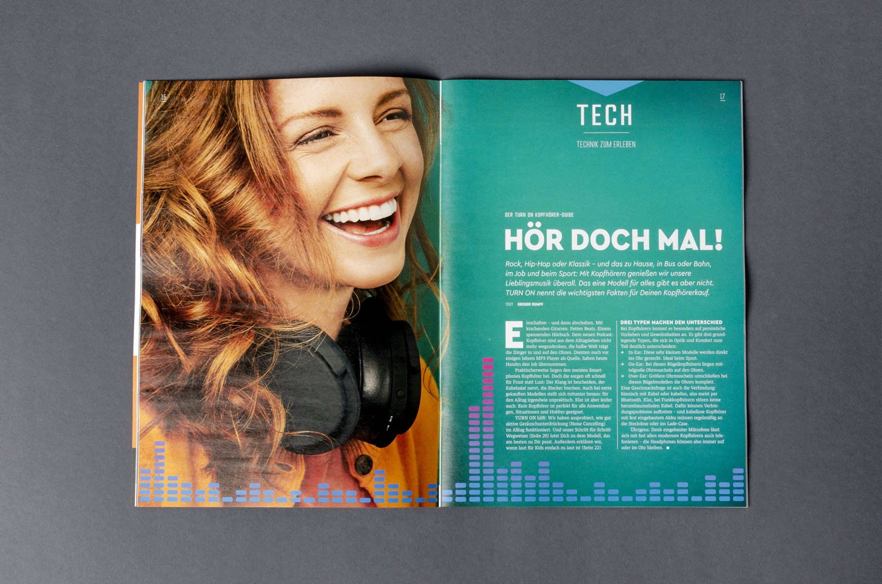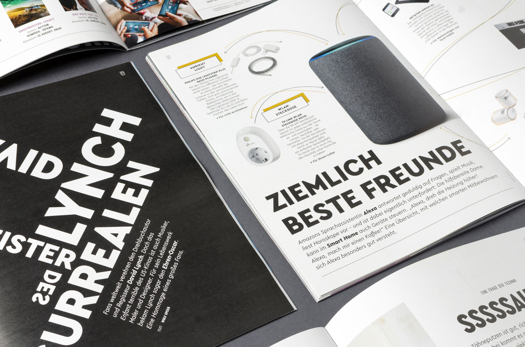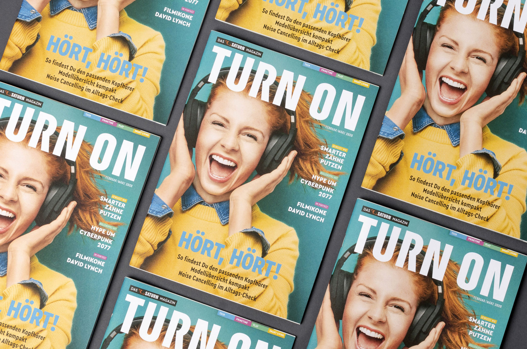 Saturn is a German chain of electronics stores, found in several European countries. The printed edition of its tech and entertainment-focussed magazine TURN ON got redesigned: Since issue 1/2020, the new layout and art direction of Hamburg-based twotype is in use.
