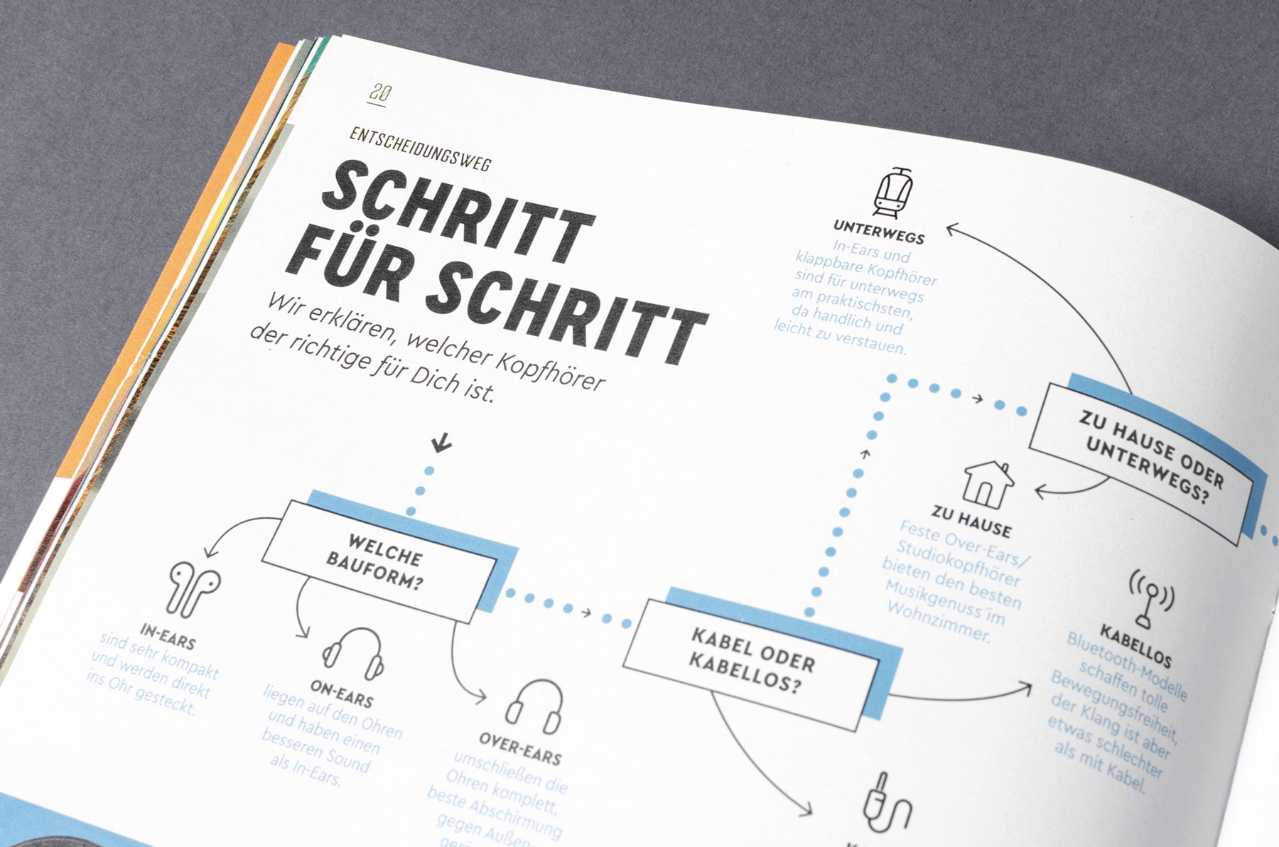 The typographic canon of art director Juliane Kess is quite organized and clear: Cera Condensed defines the headlines. The more common balanced Cera Compact is used for introductory text and some longer sections. Most text is set in Harrison Serif, with supplemental information in Harrison’s italics. Last but not least Drone Ranger is used for the figures: listings, pagination, and structuring of the chapters.