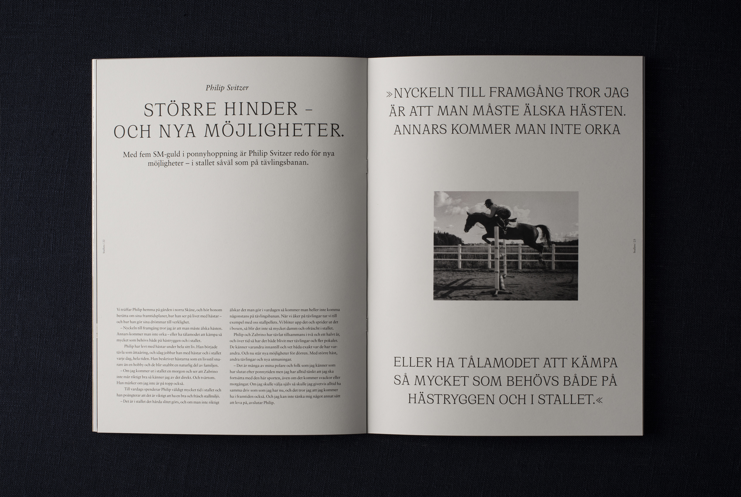 We’ve created the magazine Stallets for one of our clients, Scandbio: Sweden’s largest company within solid processed wood fuels. They sell 100% renewable energy in the form of pellets. This magazine targets horse owners, showcasing eminent Scandbio clients in their business.