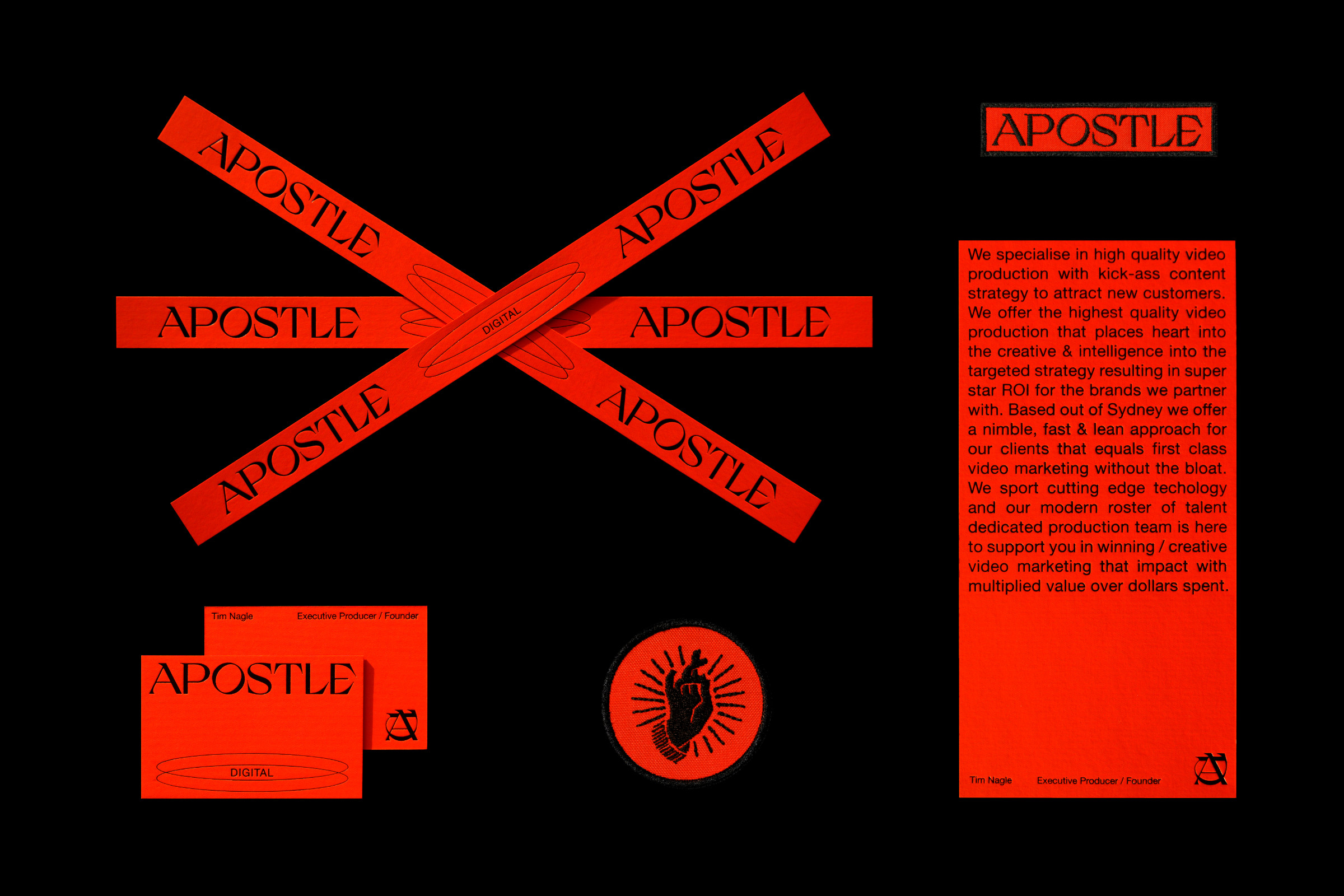 Mubien Studio created a bold identity for Apostle Digital, a video marketing solution agency based in Sydney, Australia. Apostle creates kick-ass videos centered on content strategy for today’s digital ecosystem.