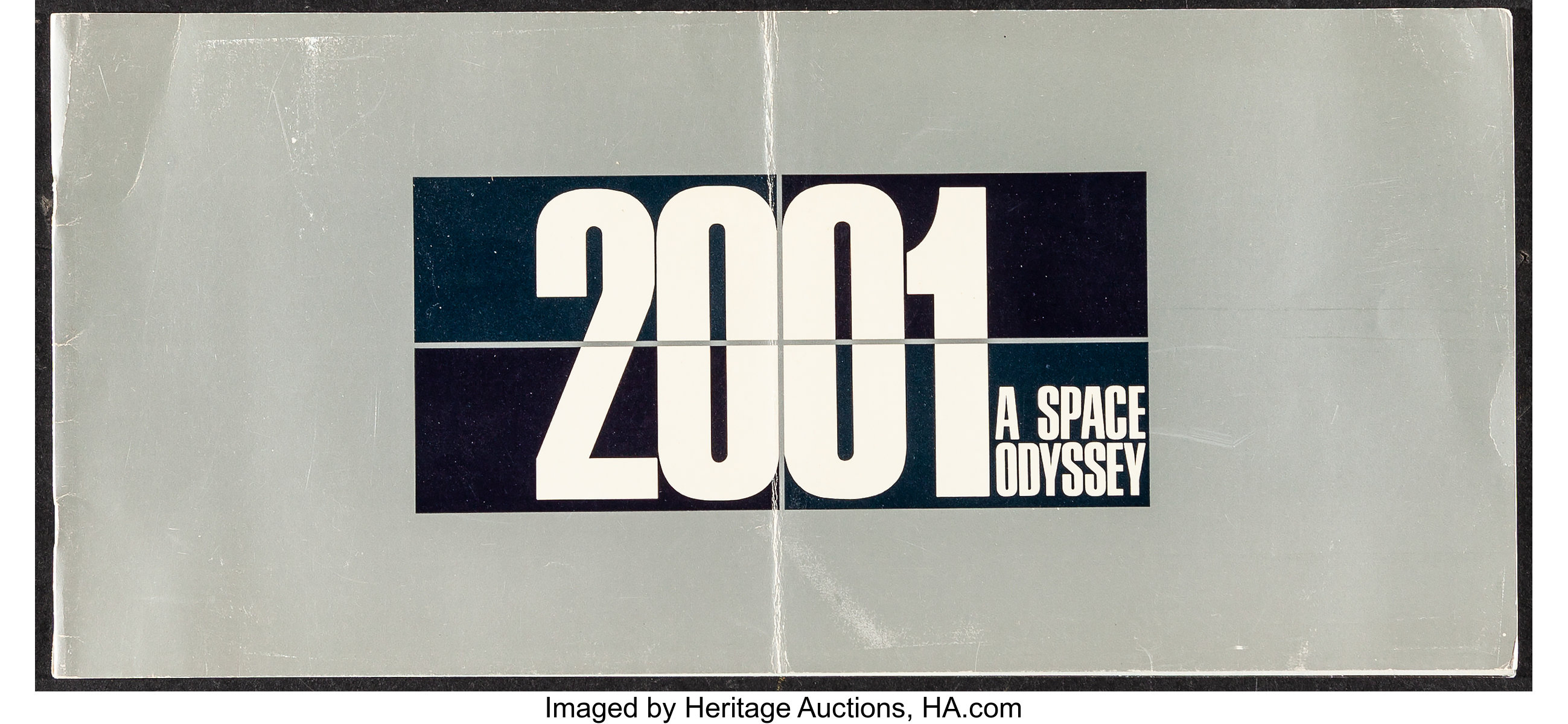Gill Sans is usually the typeface associated with 2001: A Space Odyssey, but this purely typographic treatment using Permanent Headline for a promotional program (28 pages, 16″×7.25″) is equally dramatic.