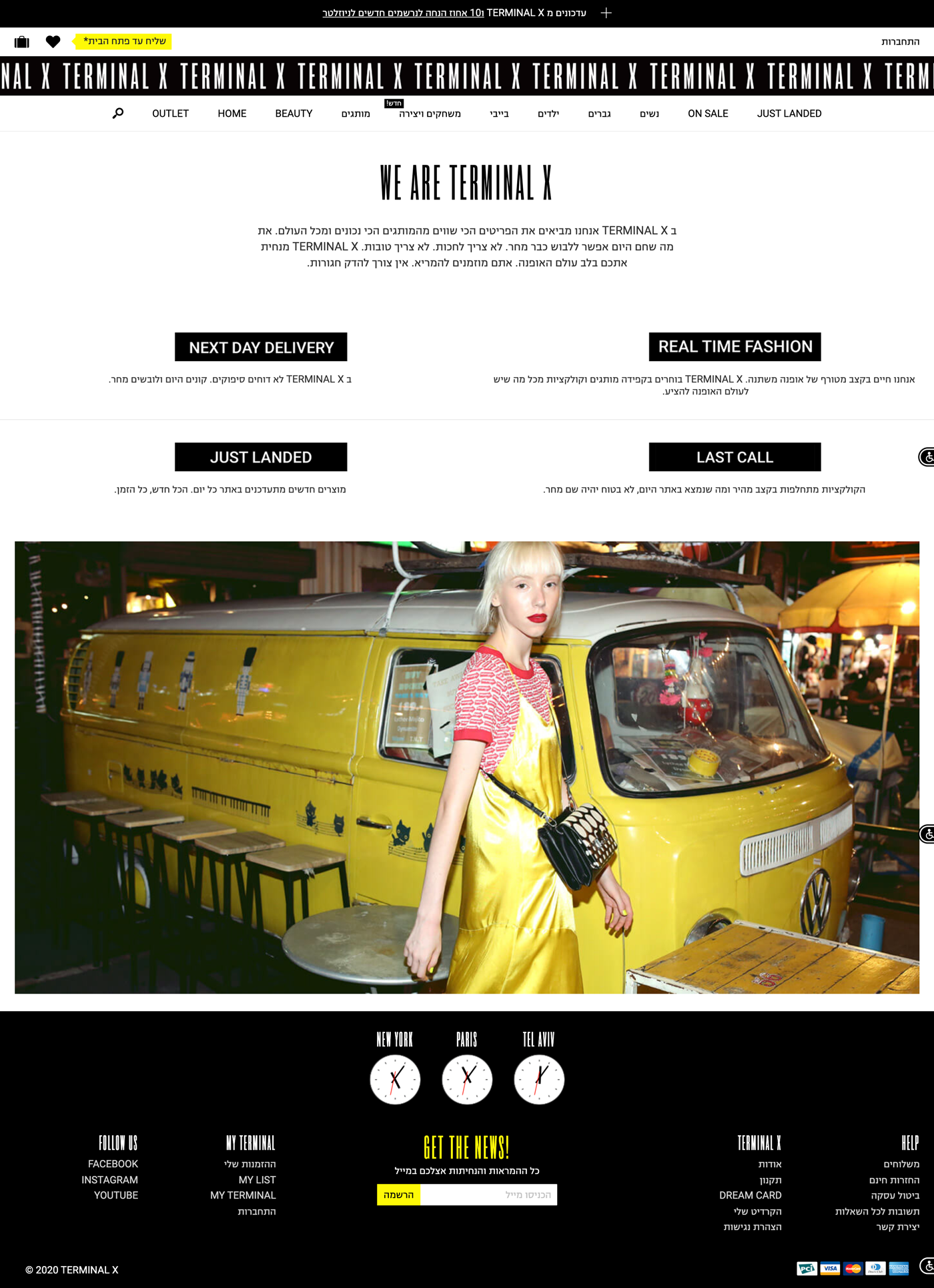 The predominant ingredient in this very typographic scheme is ITC Roswell. Released in 1998, Roswell is an interesting choice given the hundreds of other compressed Grotesques available these days. Jim Parkinson’s typeface tempers a stark, nearly uniform verticality with a bit of irregular, woody warmth in some of the terminal details (C, G, R, S). Like its name, TERMINAL X uses only uppercase letters. The company is based in Tel Aviv and its website is set primarily in Hebrew using Roboto for text with Narkiss Block as a fallback and an unidentified typeface for some heads.