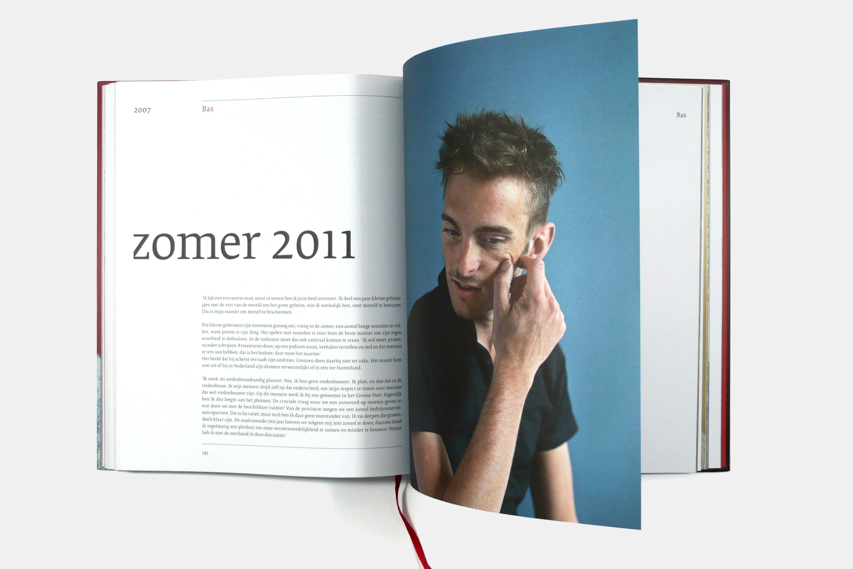 In the 232-page hardcover book that was printed in full colour we used the typeface Collis, designed by Christoph Noordzij for the TEFF library. Each story starts with a spread, combining a big title that is cut on the left side in combination with a full size photography.