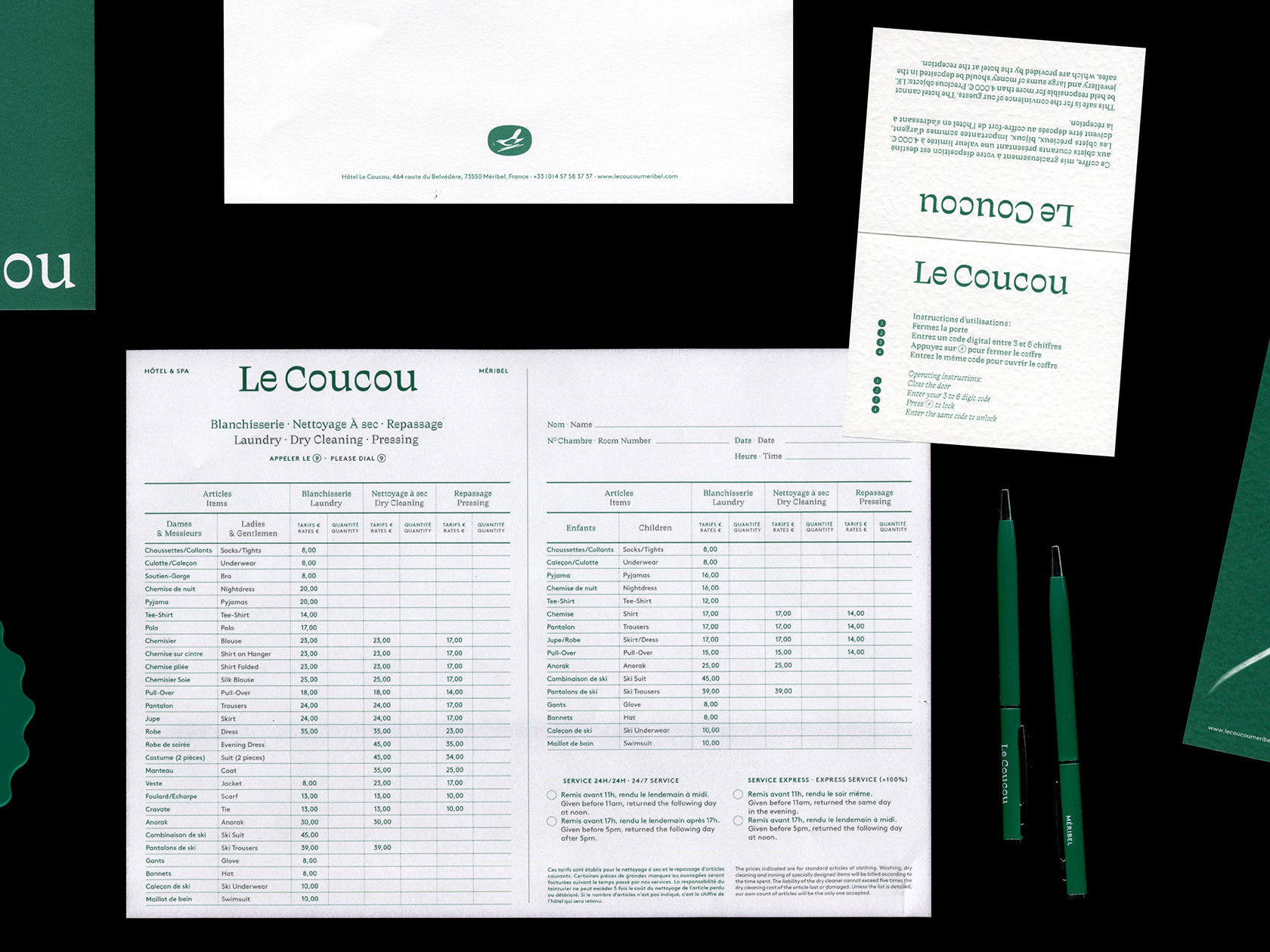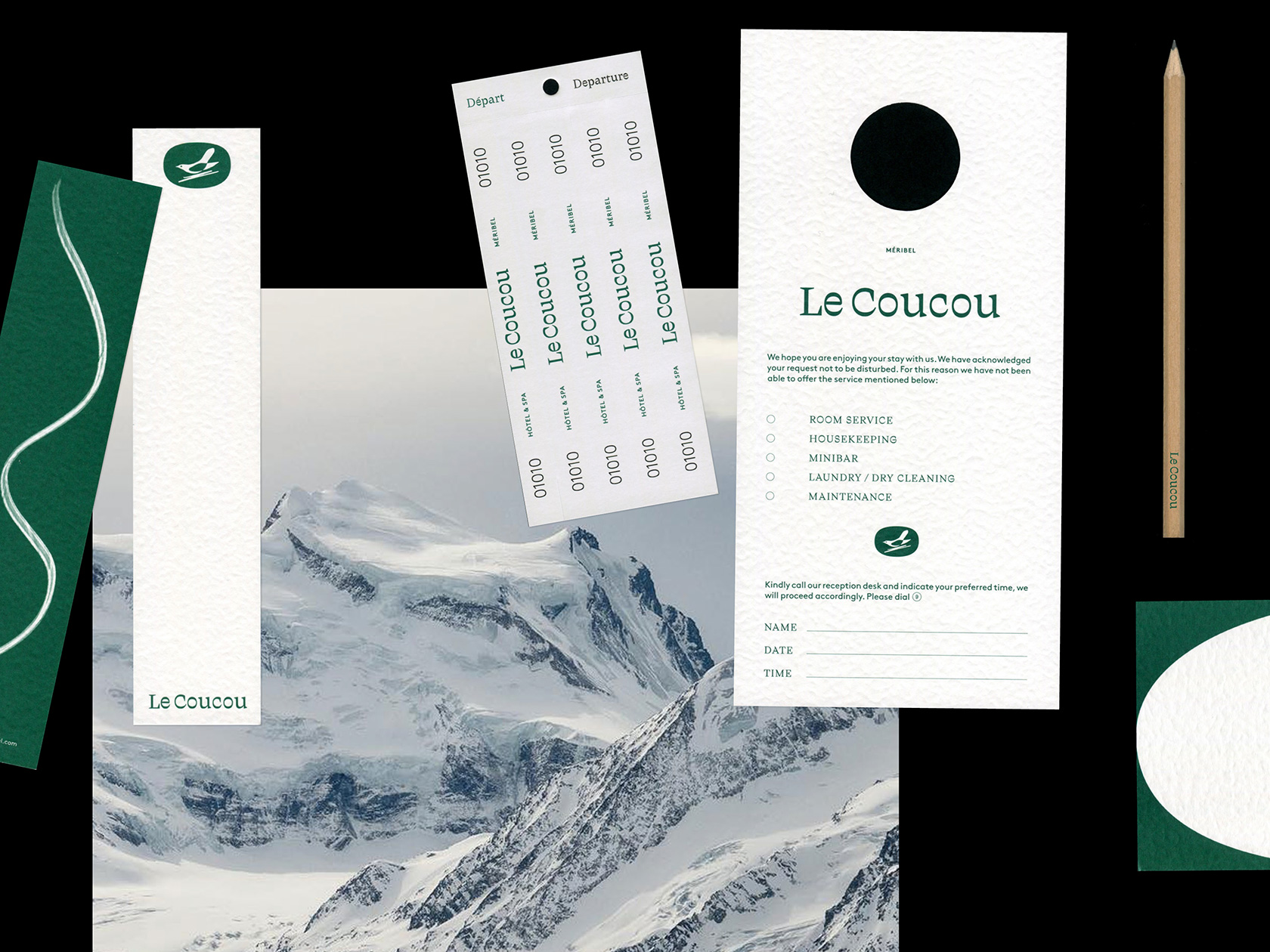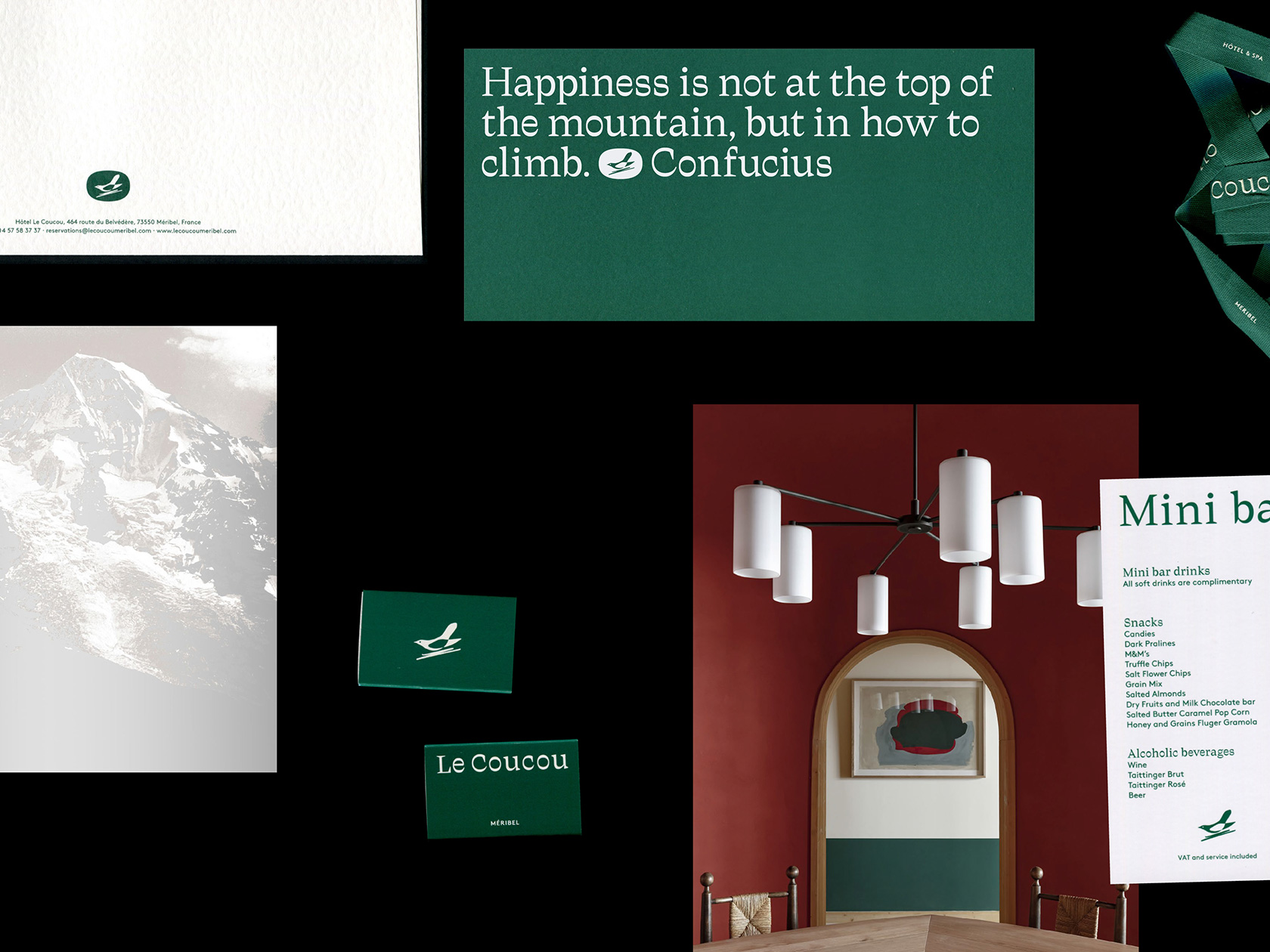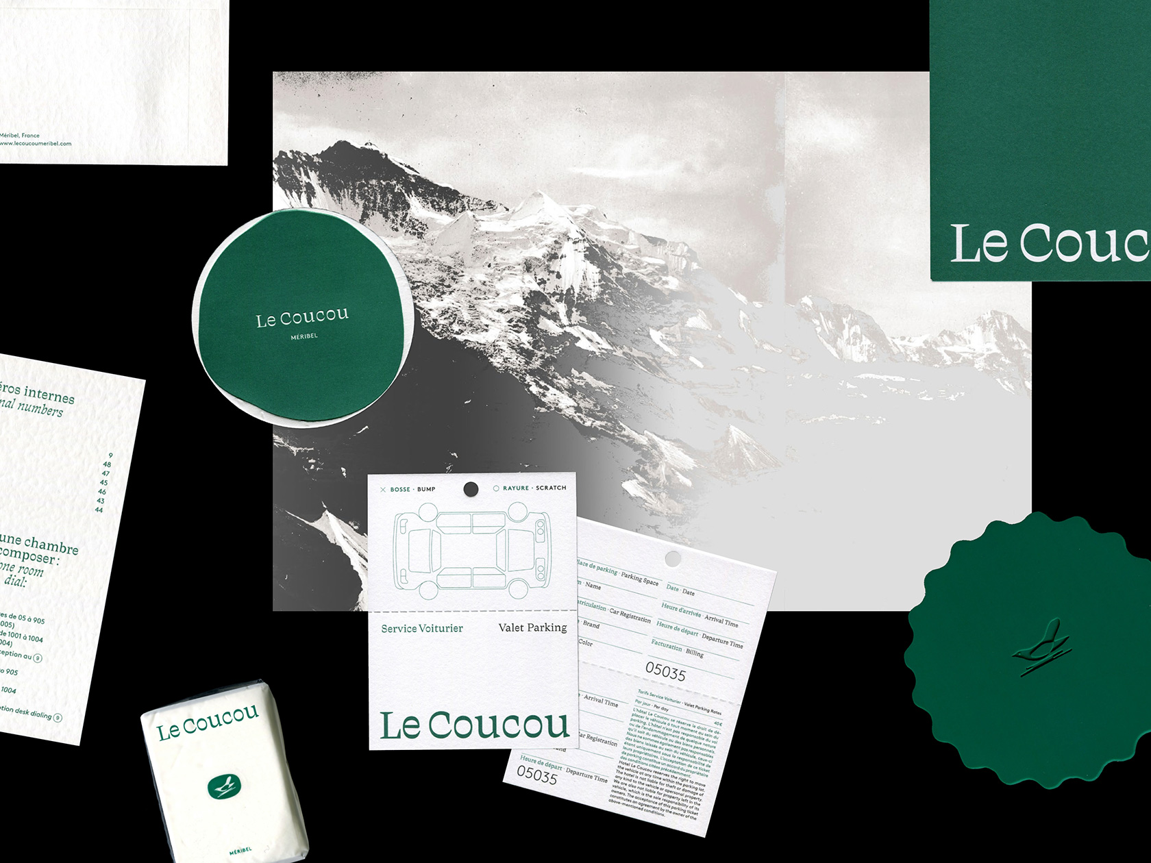Le Coucou is a five stars hotel in Méribel, France, with interior design by Pierre Yovanovitch. The visual identity was designed by GeneralPublic, using Traulha Jornau and Italica, plus its sans-serif companion Traulha Lineara.