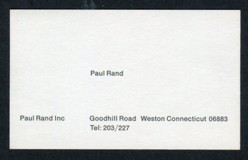 Paul Rand’s business card Contributed by Stephen Coles on Feb 5th, 2013. Source: amassblog.com Via James Phillips Williams. License: All Rights Reserved. Typefaces More about HelveticaGet Helvetica Formats Branding/Identity (8625) Topics Graphic Design (3047) Designers/Agencies Paul Rand (10) Tagged withPaul Rand (3)business cards (1556)minimalist (531)one typeface, one size (415)only type (1297) In SetsSelection (Francisco Besa) (125)brand (Reshid Bey) (17)Identity (Evgenia Vlachaki) (9) Post a comment Name Email – will not be published Website Your response Submit Comment More Helvetica in use Tokyo Science – Tokyo Science album art1986Al SgroiContributed by Nick Sherman Disconnection exhibition poster2020Panagiotis TsironisContributed by Panagiotis Tsironis Yellow Magic Orchestra – Technodelic album art and Winter poster1981Yukimasa OkumuraTSTJ Inc. (The Studio Tokyo Japan)Contributed by Jay W. Mellor (JWM) Sponsor More in Graphic Design Zef’s website2019Zef Cherry-KynastonContributed by Zef Cherry-Kynaston “I Would Rather Be a Cyborg Than a Goddess”2018Yura ParkContributed by Yura Park William Addison Dwiggins: The Compleat Typographerc. 1962Modern LinotypersContributed by Stephen Coles Massimo Vignelli’s A Few Basic Typefaces1991Massimo VignelliVignelli AssociatesContributed by Stephen Coles Blog More in Branding/Identity Red Pop2011Aaron DraplinBrendan DawesContributed by Stephen Coles Blog Pick Meal Up appc. 2020FIRM.GSContributed by FIRM.GS Prado Eco-studio2020Tiquismiquis ClubJuan MartínRoberto EsparteroContributed by Tiquismiquis Club Wietzow Oper im Park2021Lena HeggerContributed by WELTKERN® Typefaces Staff Pick More Fonts In Use Powers of Ten1977Ray EamesCharles EamesEames OfficeContributed by Nick Sherman Staff Pick The Crusaders – At Their Best album art1973unknownContributed by Florian Hardwig Staff Pick Coconut Bliss (2021 rebrand)2021GanderContributed by Sharp Type Staff Pick Super cellule visual identity2021Pierre JeanneauContributed by Benoît Bodhuin Staff Pick