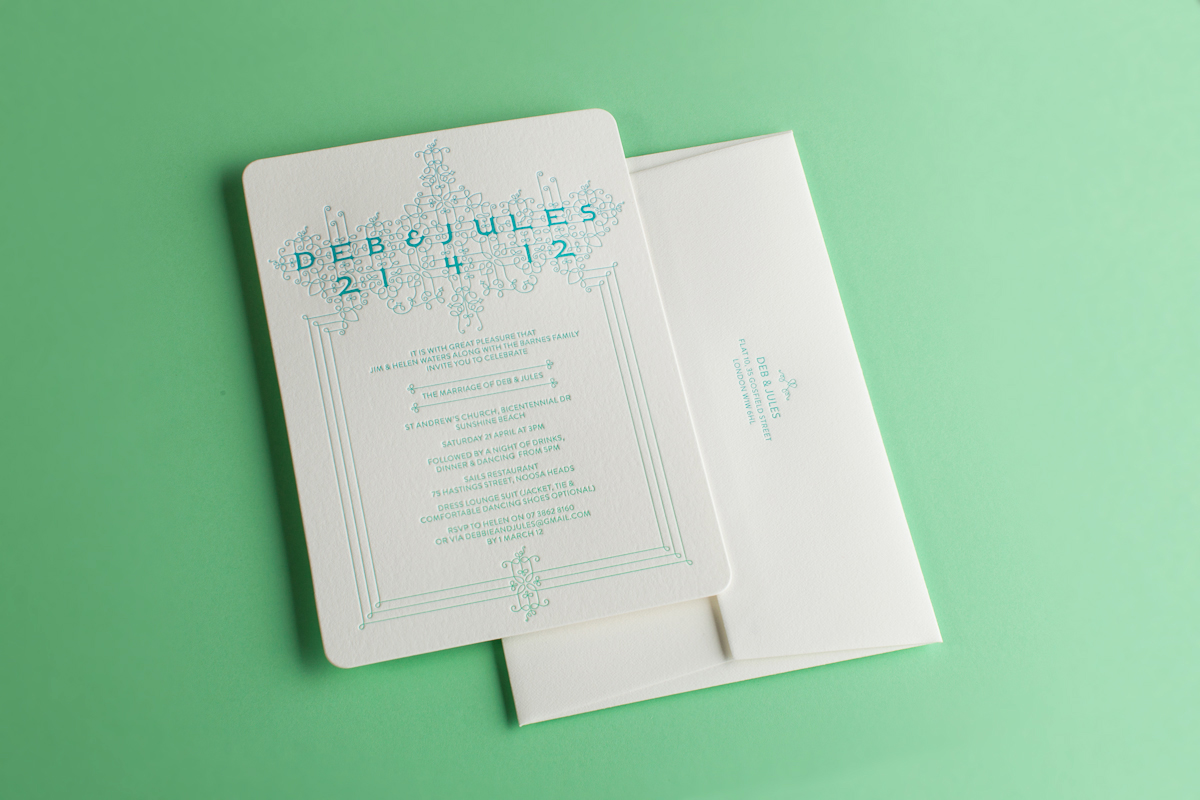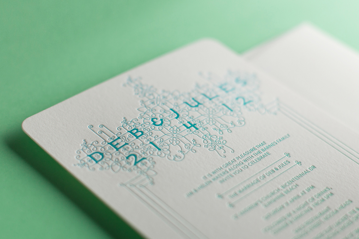 The sole element used in the design of the invitation is a monospaced typeface she designed called Restraint.