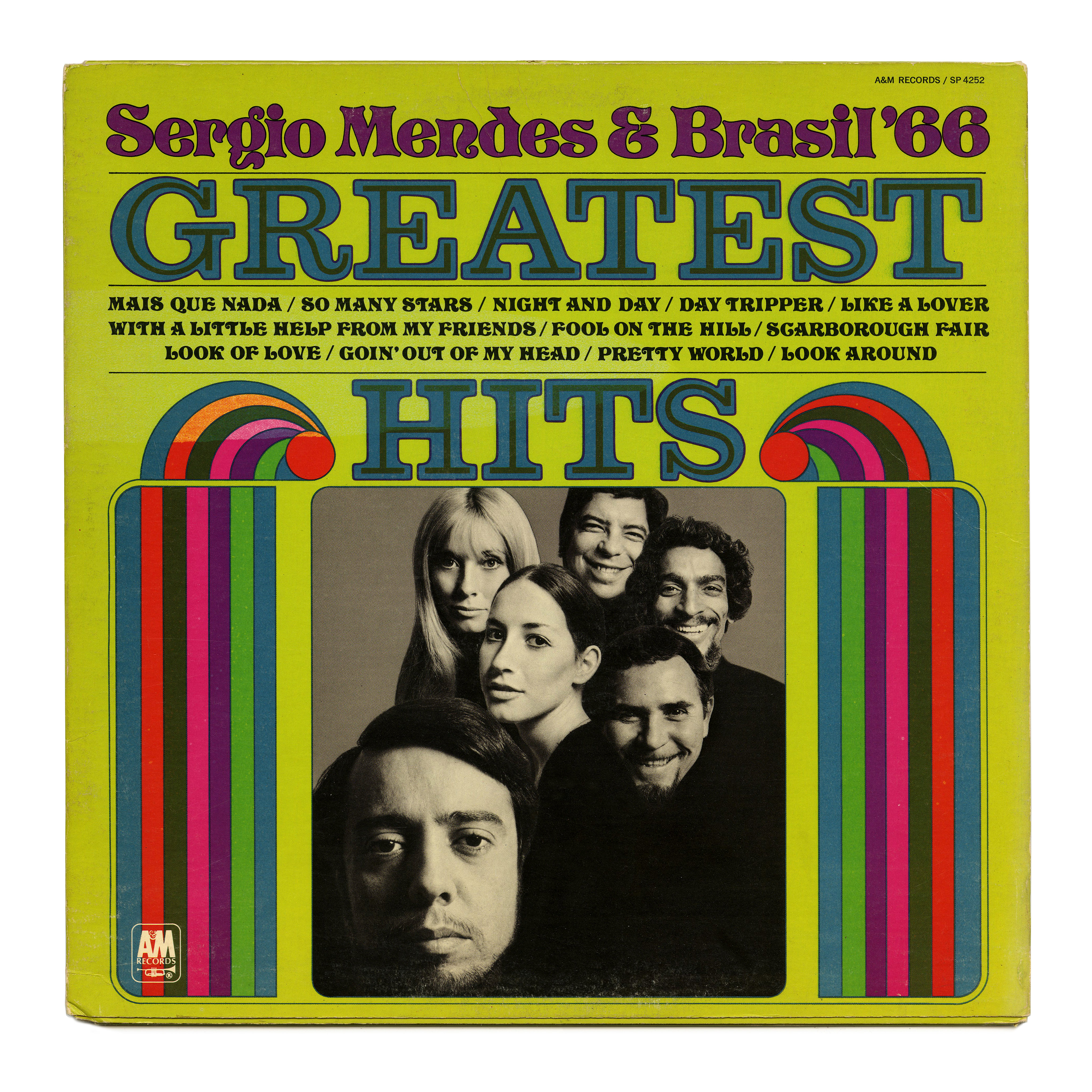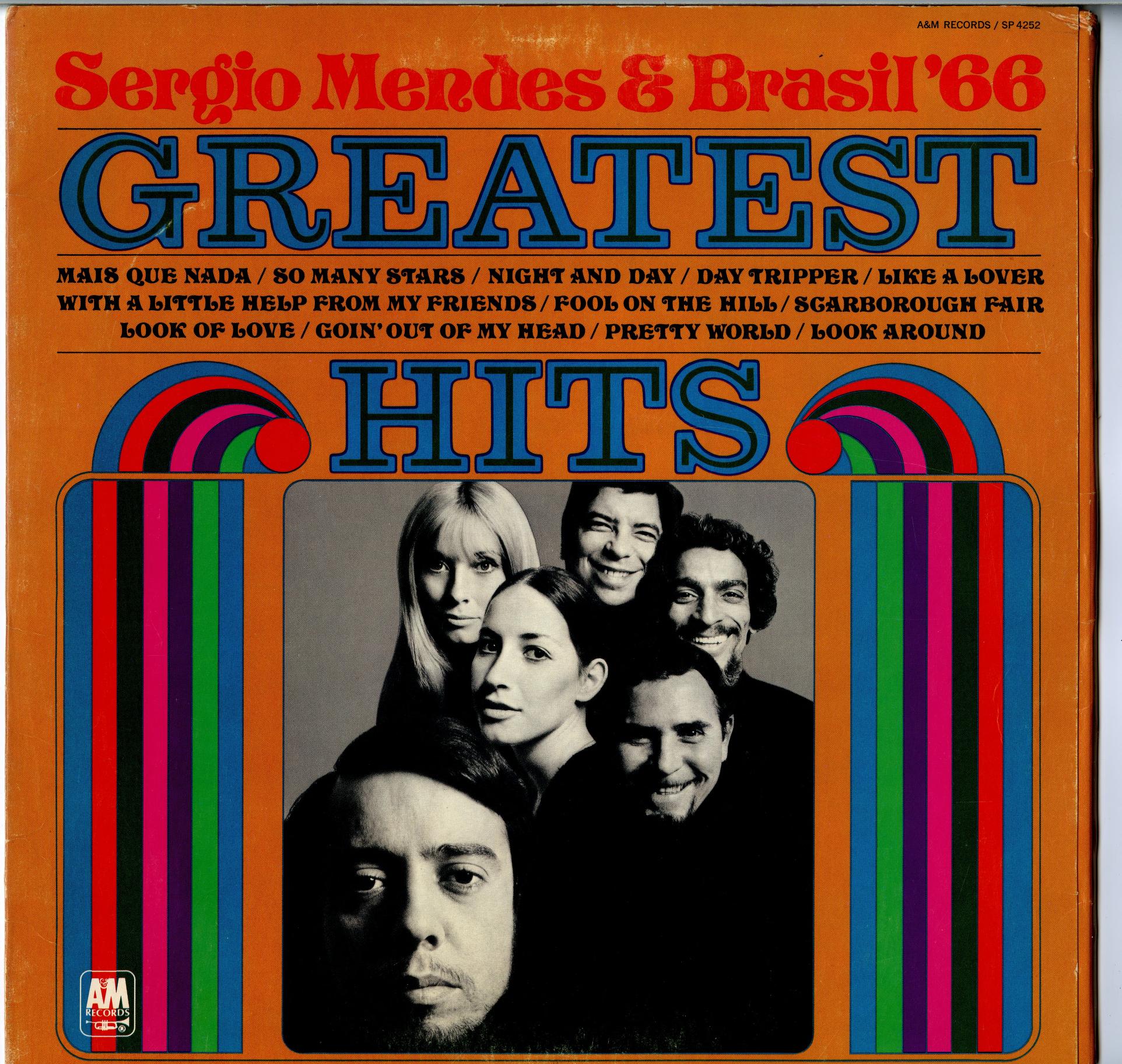 Compilation album by Sérgio Mendes & Brasil ’66 released by A&M Records in 1970 in their Greatest Hits series. It opens with the group’s cover version of “Mas que Nada” which, according to Mendes, “was the first time that a song in Portuguese was a hit in America and all over the world.” It here is misspelled as “Mais que Nada”.